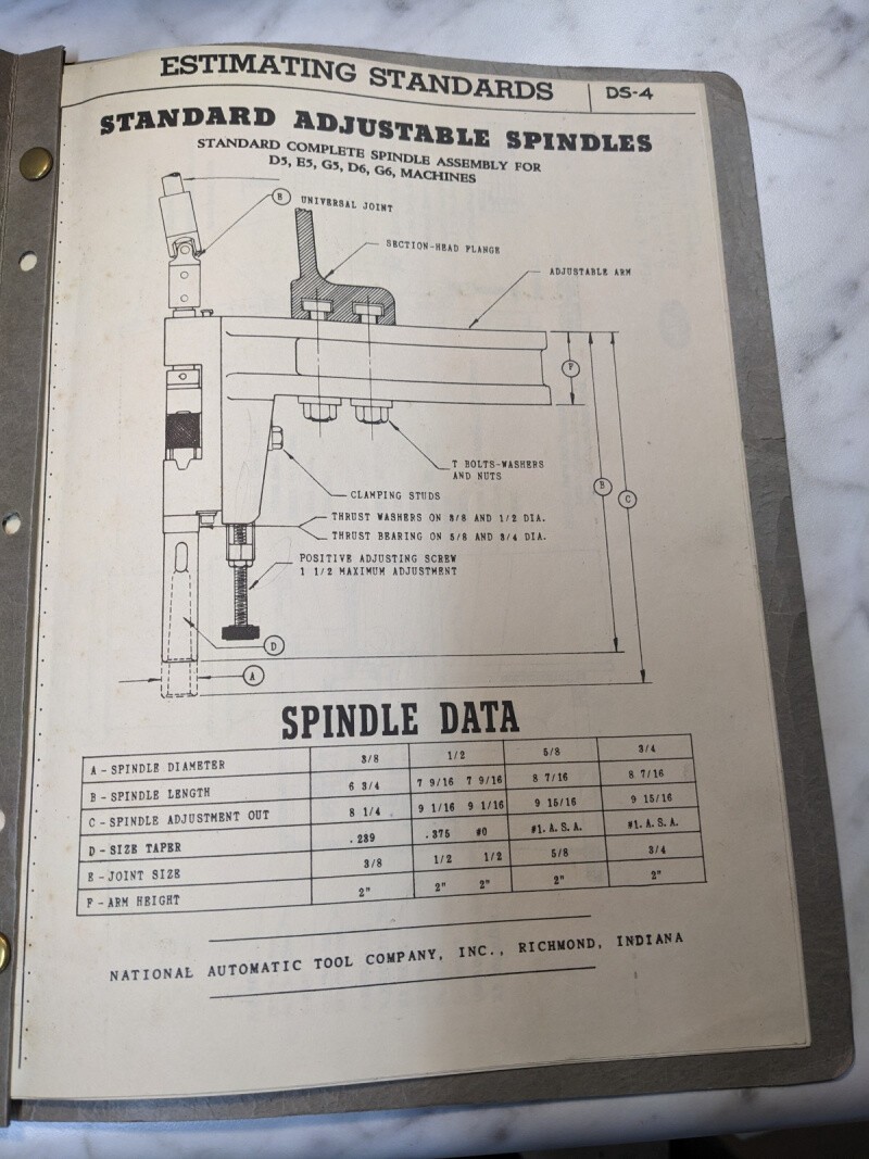 Natco Estimating Standards Adjustable Spindles D5 E5 G5 D6 G6 Machines 1948