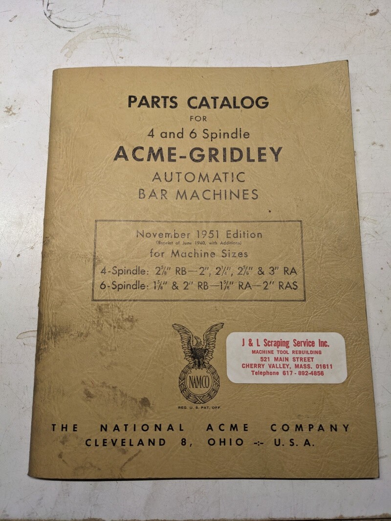 National Acme Service Parts List Manual Gridley Automatic Rb Ras Model Bar 1951