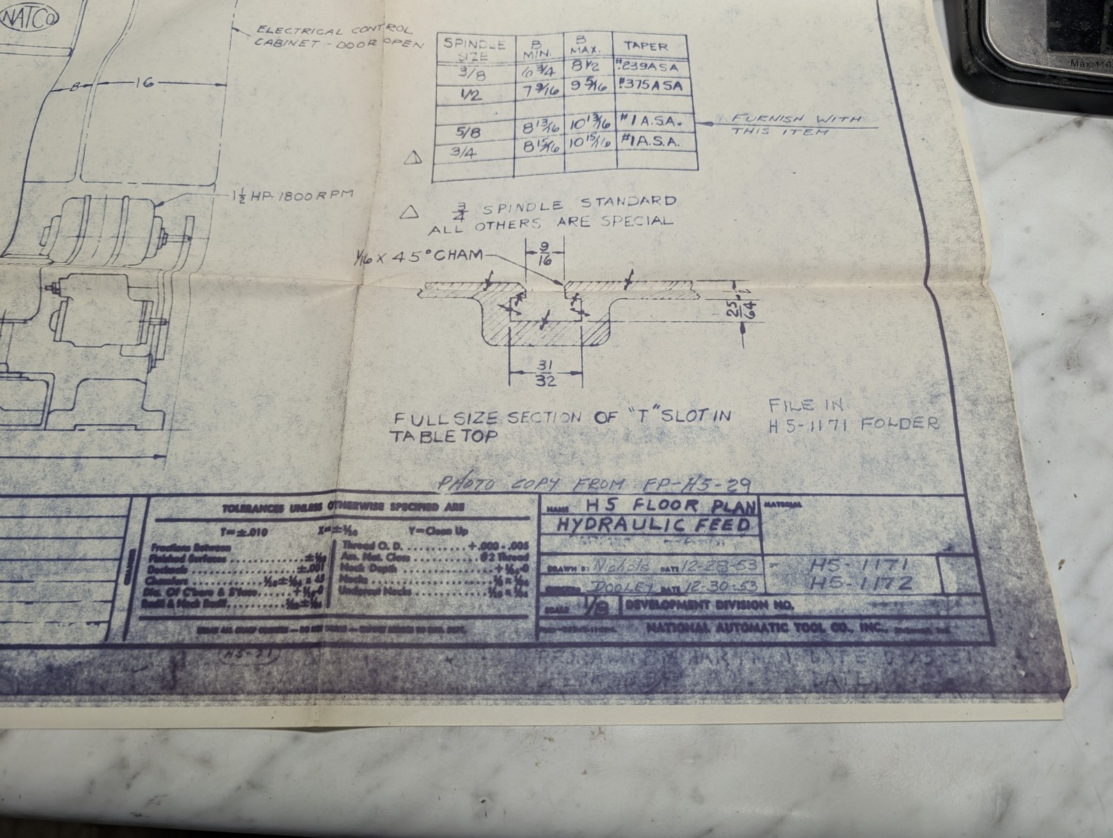 National Automatic Tool Machine H5 Driller Tapper Layout Drawing 1953 Fp-H5-29