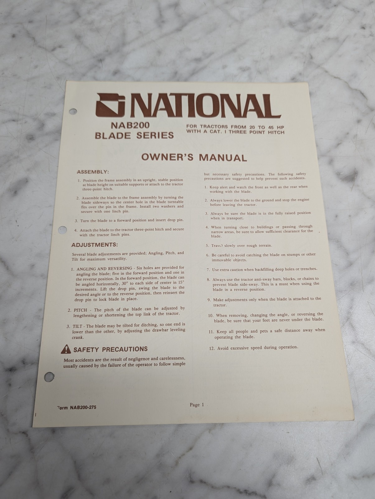 National Nab200 Blade Series For Tractors From 20 To 45 Hp Owner’S Manual