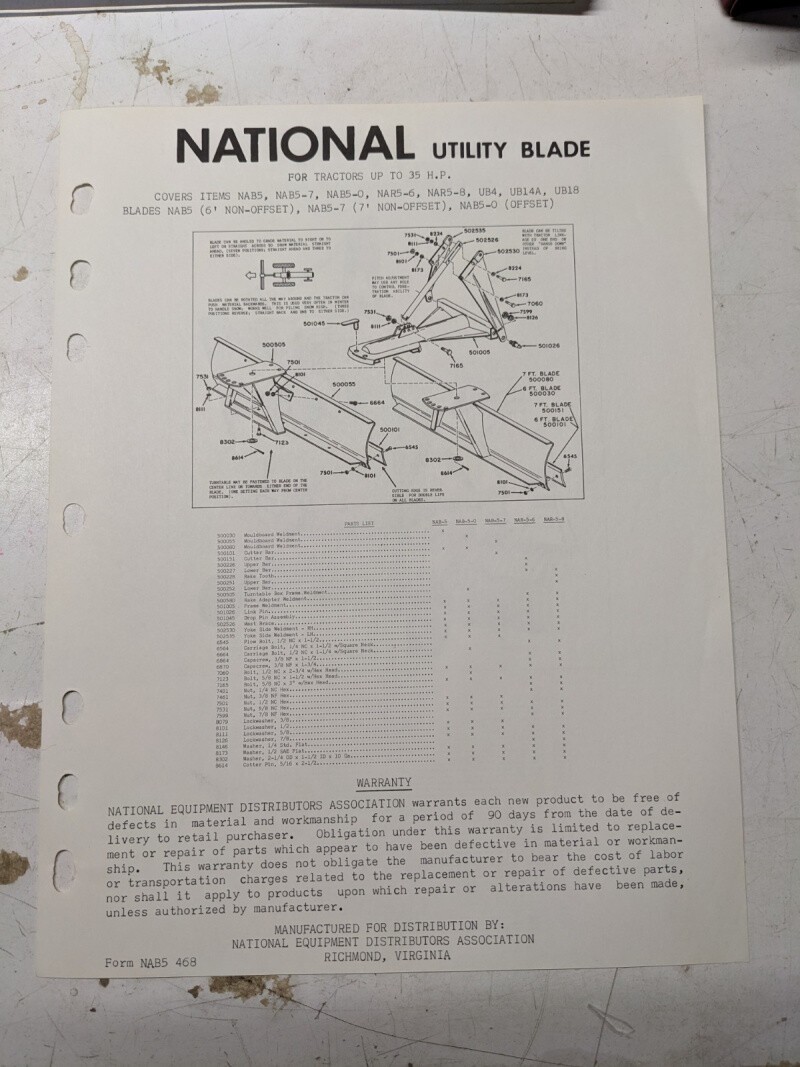 National Utility Blade Parts List Nab5 7 O Nar5 6 7 Ub4 Ub14A Ub18 Installation