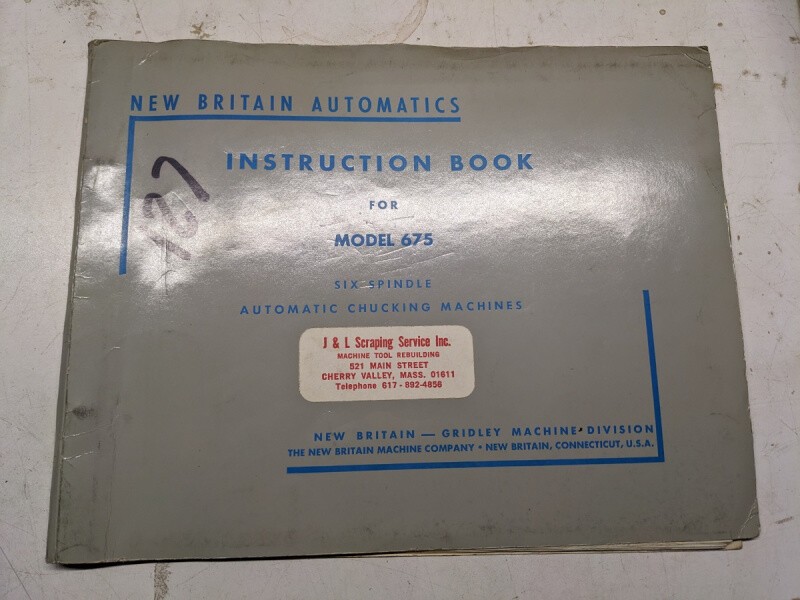 New Britain Gridley Chucking Machine Operator Service Manual Automatic Model 675
