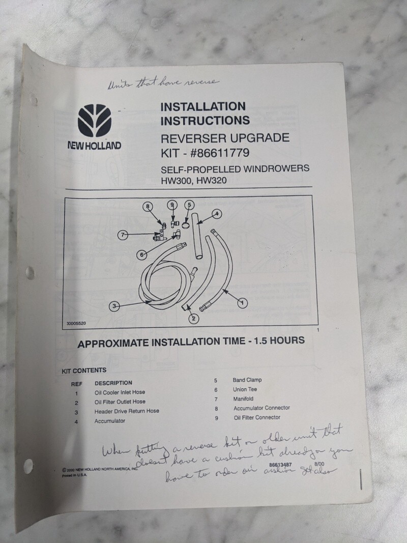 New Holland Installation Instruction Manual Reverse Upgrade Kit Hw 86613487