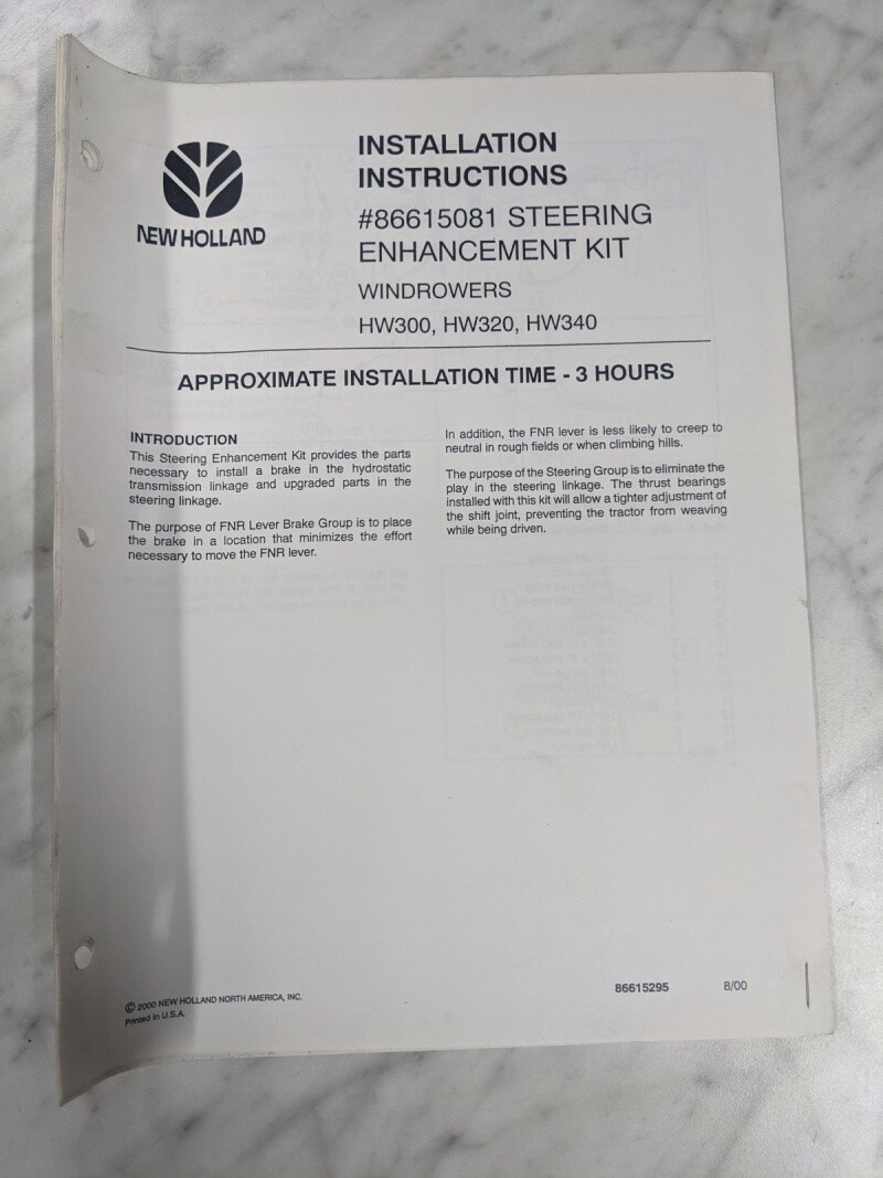 New Holland Installation Instruction Steering Enhancement Kit Hw 300 86615295