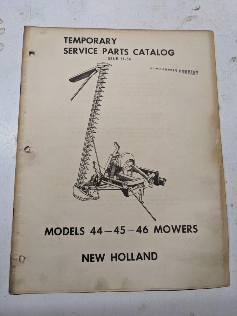 New Holland Temporary Service Parts Catalog List Book Manual 1956 44 45 46 Mower