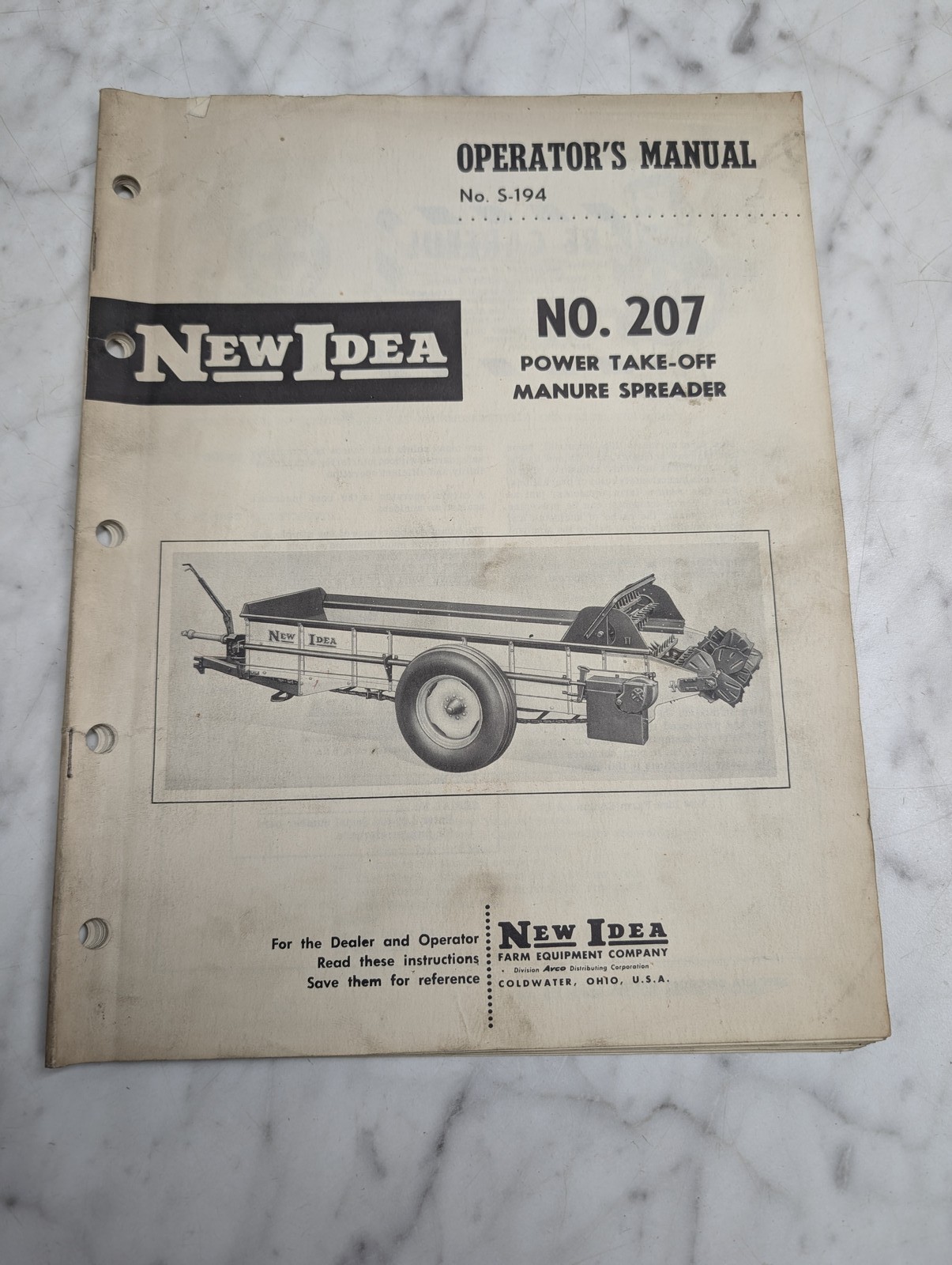 New Idea No 207 Power Take-Off Manure Spreader Operator’S Manual Operators Owner