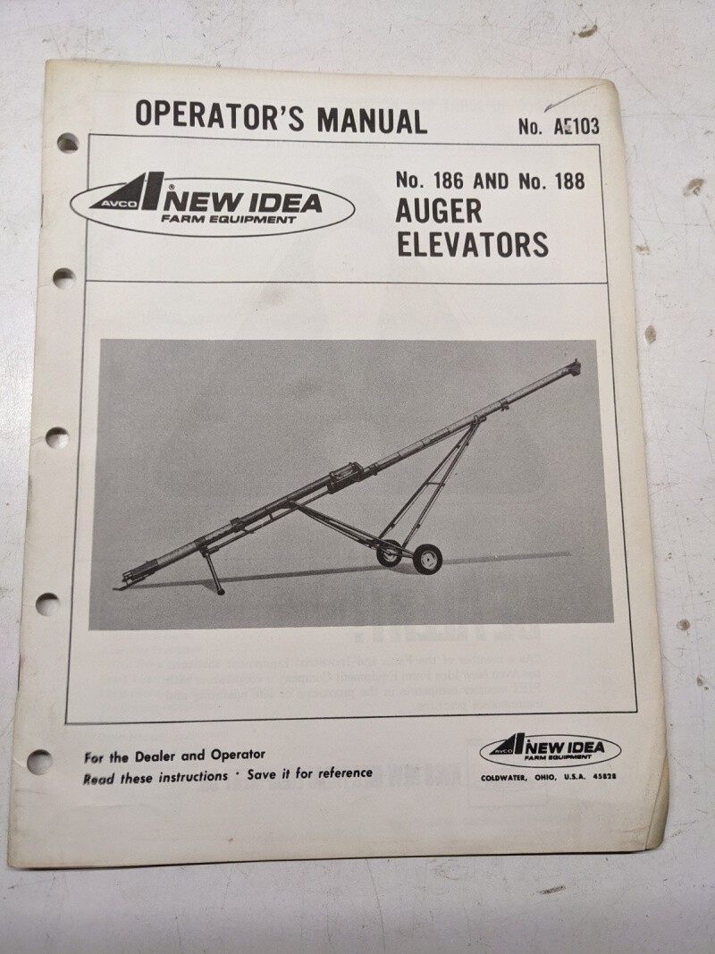New Idea Opearator’S Manual Repair Parts List Book 186 188 Auger Elevator
