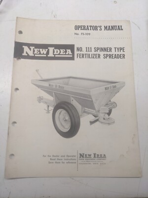 New Idea Operator’S Manual Owner Book Fs-109 Fertilizer Spreader No 111 1963