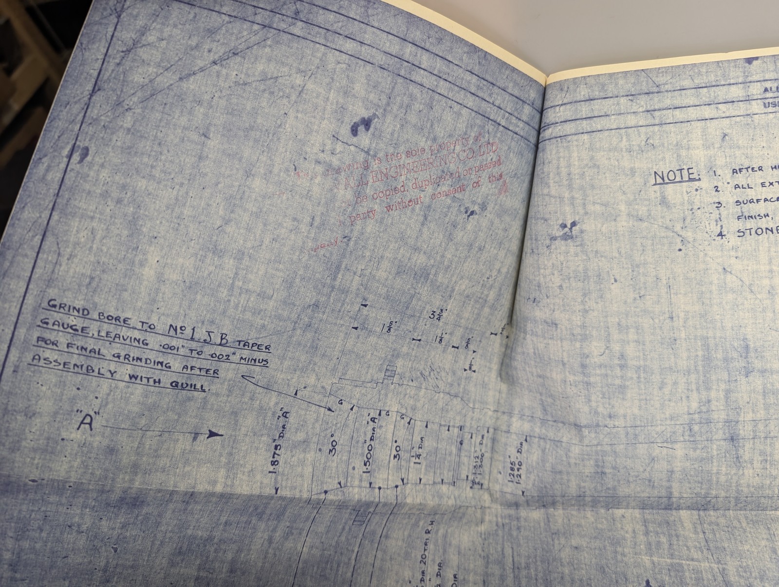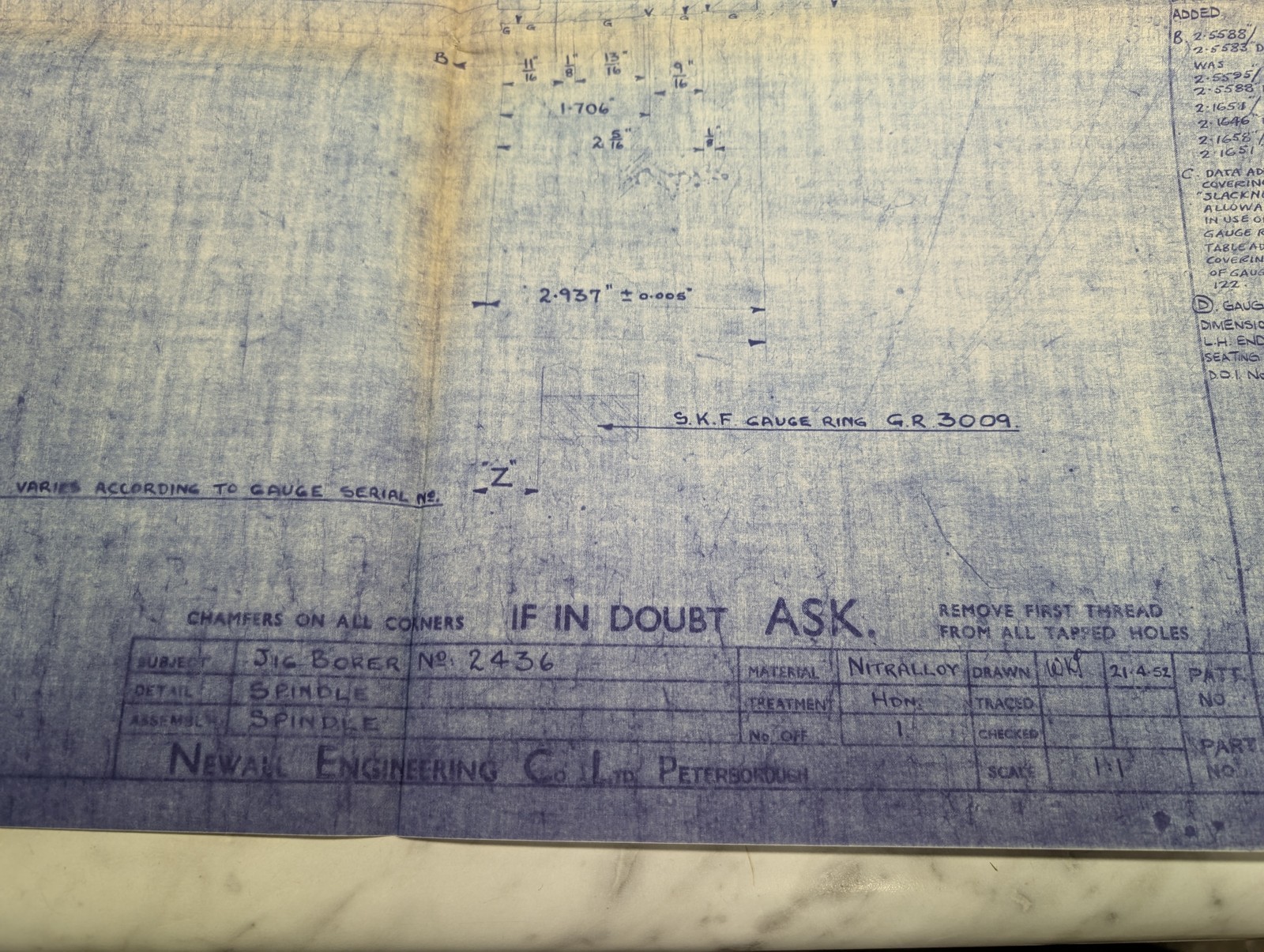 Newall Jig Borer Machine Tool Spindle Engineering Drawing Blue Print 11616