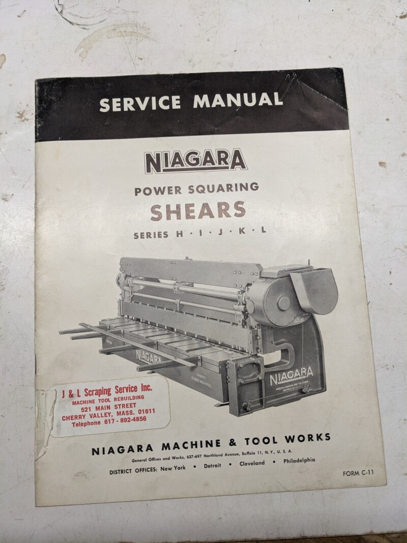 Niagara Squaring Shears Series H I J K L C-11 Service Manual Parts List 1954