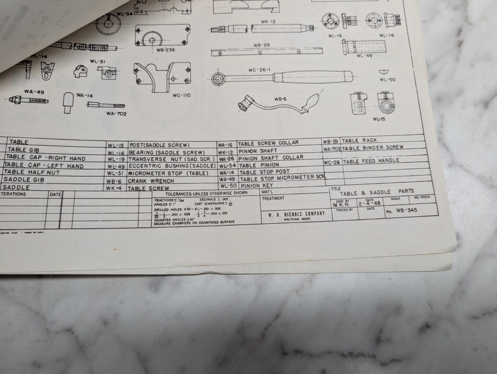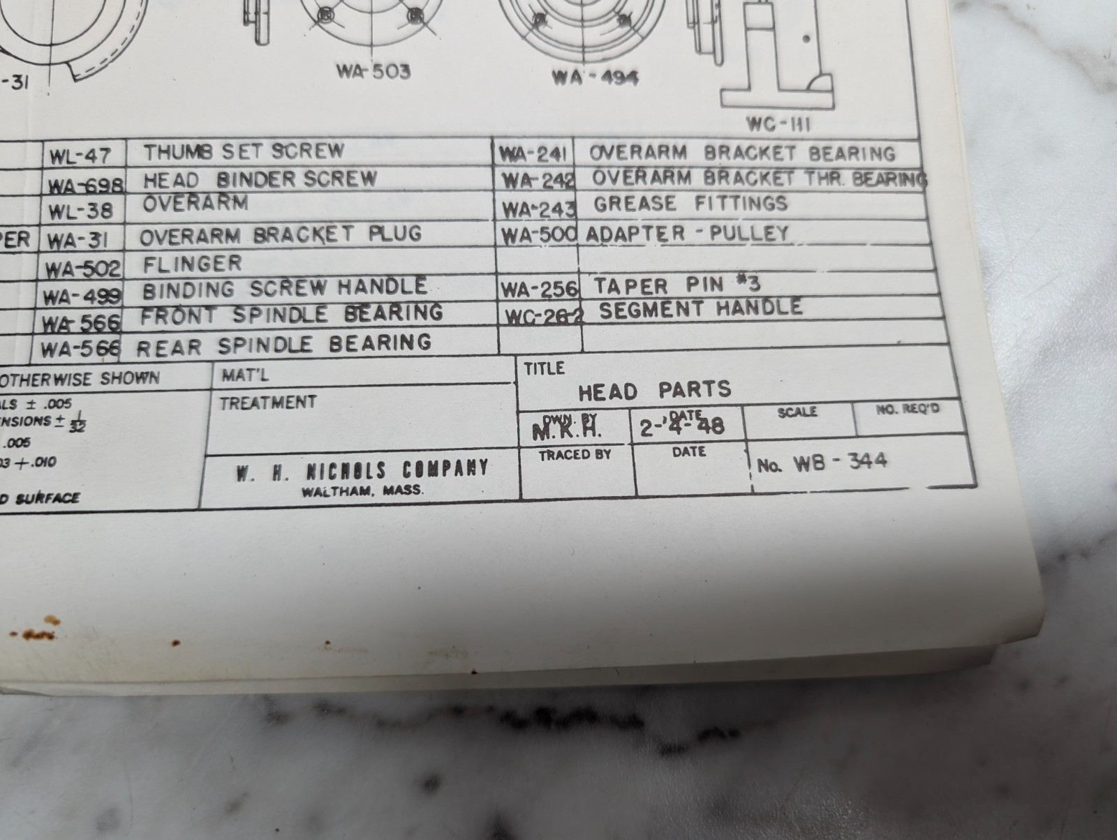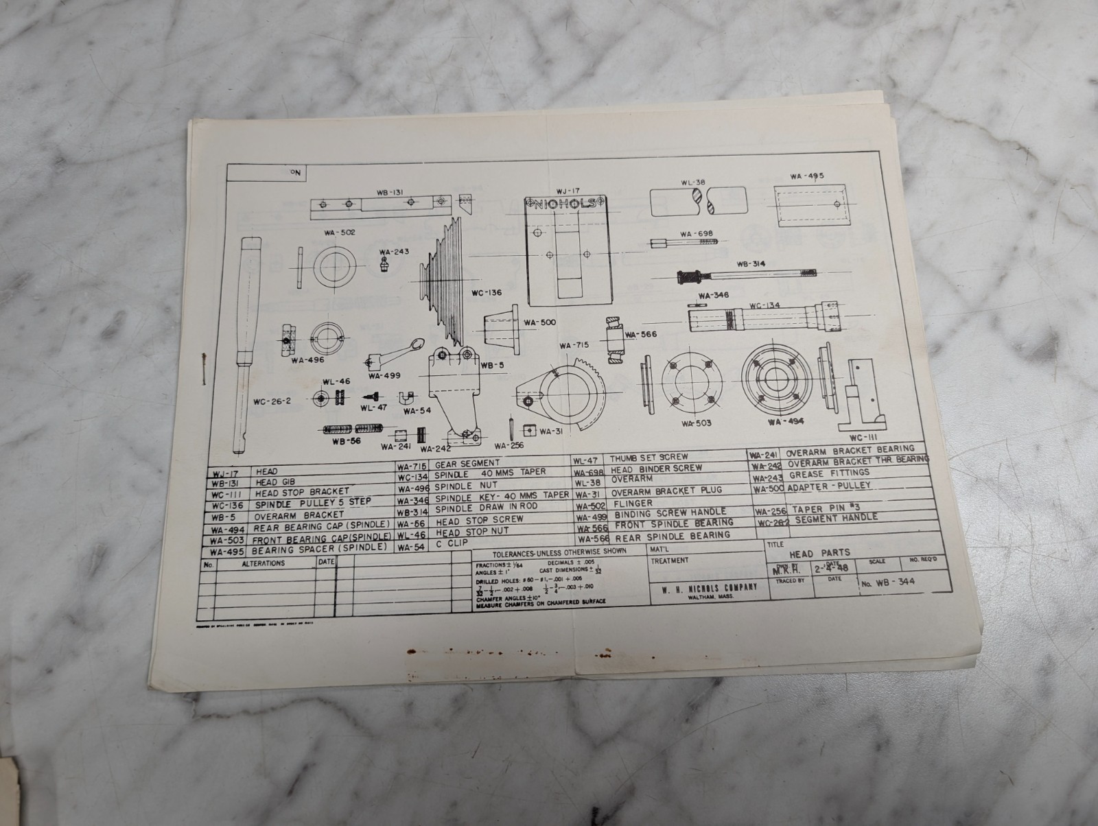 Nichols Machine Tool Drawings Diagrams Engineering Prints Sheets Pages