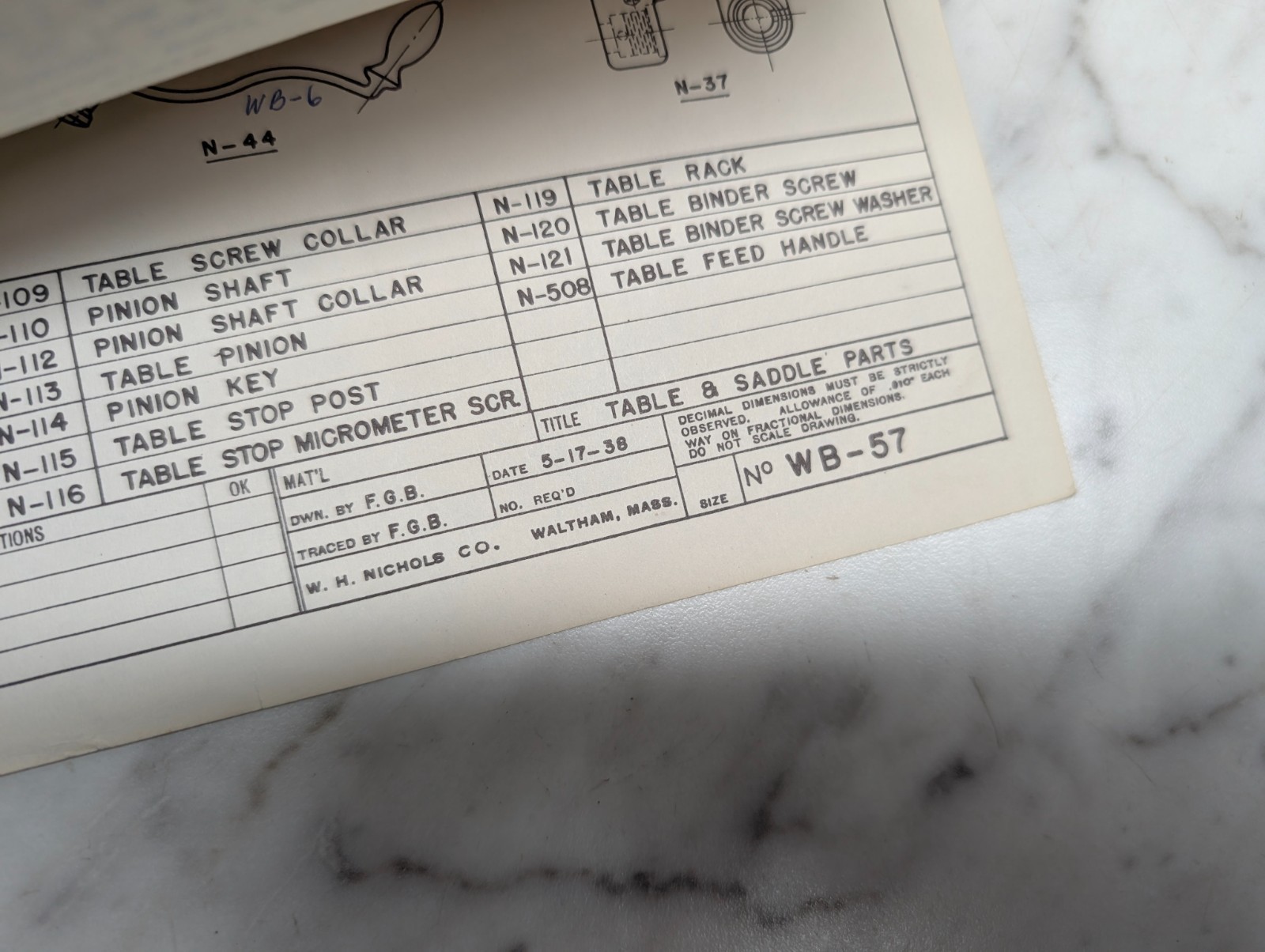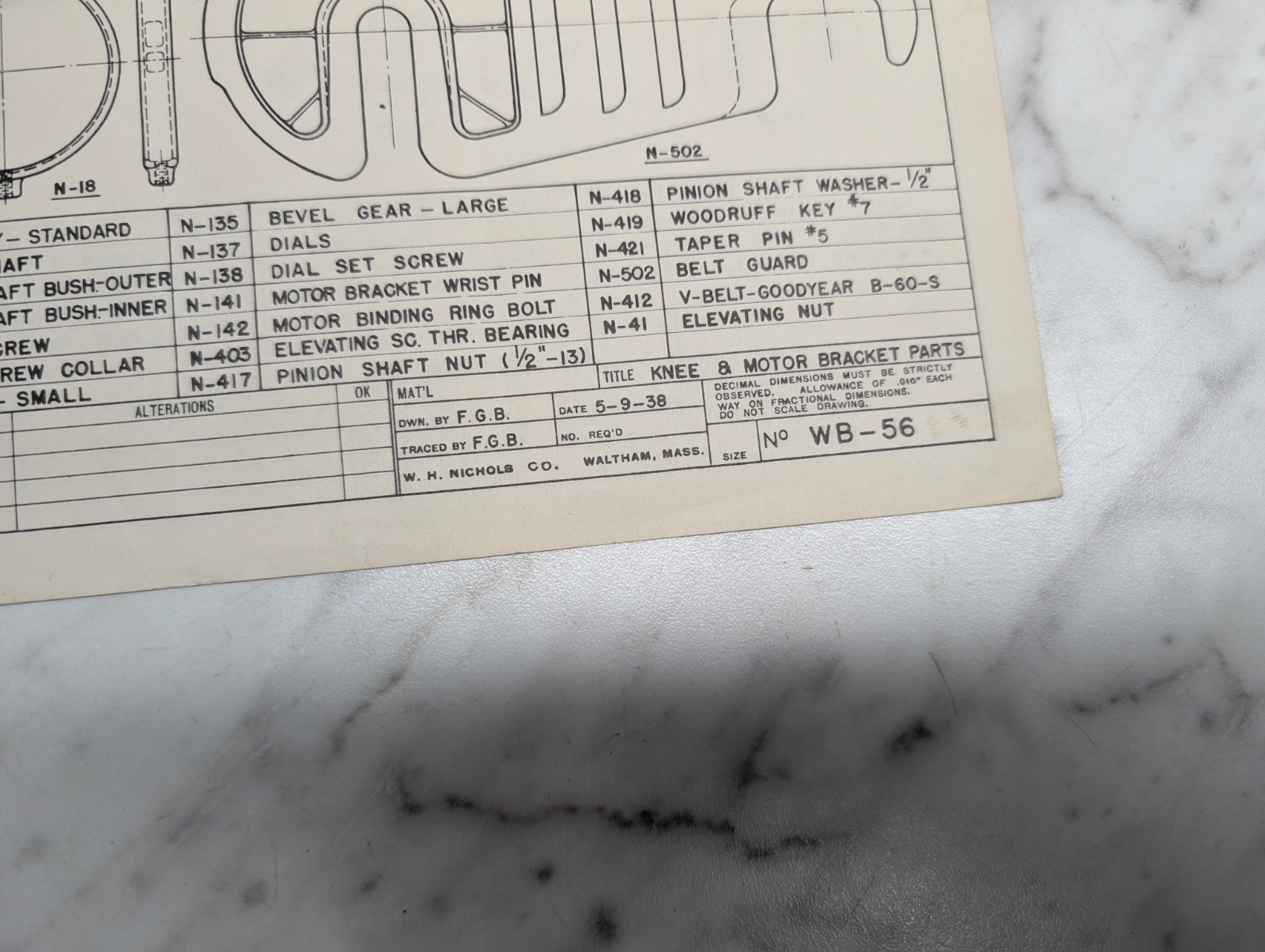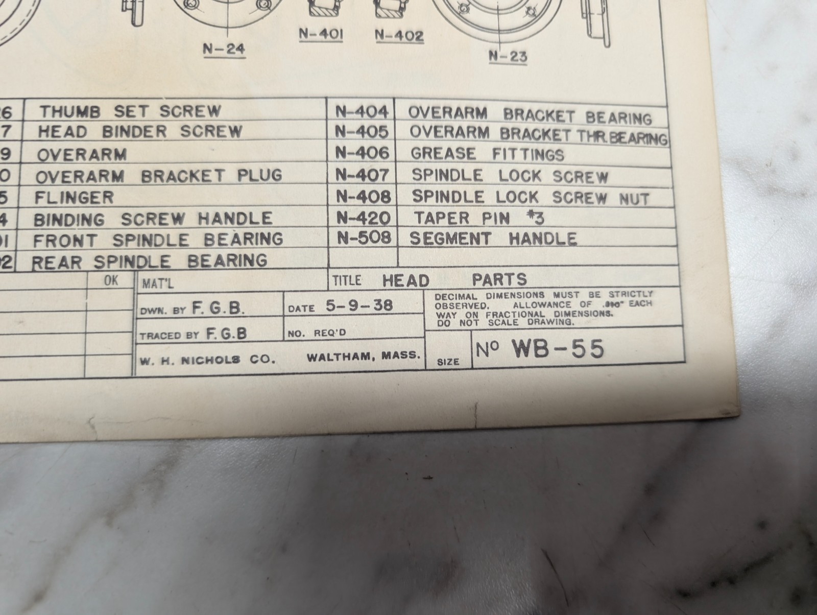Nichols Machine Tool Drawings Diagrams Part Prints Sheets Pages