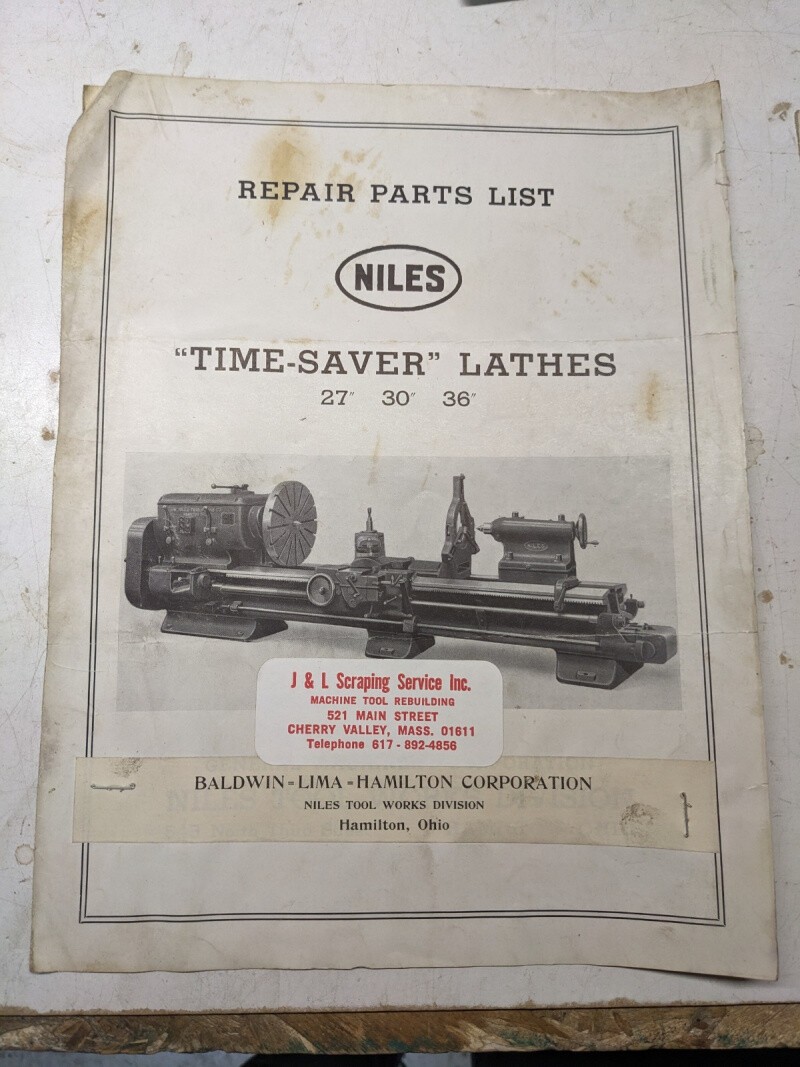 Niles Lathes Service Repair Parts List Book Manual Catalog Time-Saver 27 30 36”
