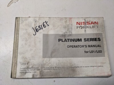 Nissan Fork Lift Truck L01 L02 Operators Manual Platinuim Series 2005 L012-E