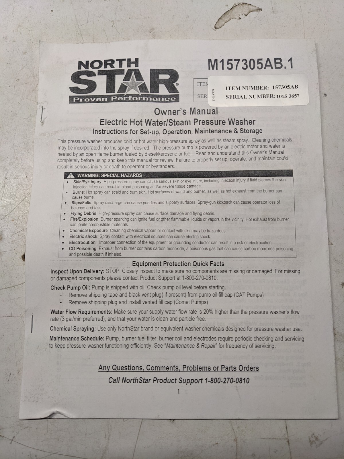 North Star Owners Maintenance Parts List Book Manual Pressure Washer M157305Ab.1