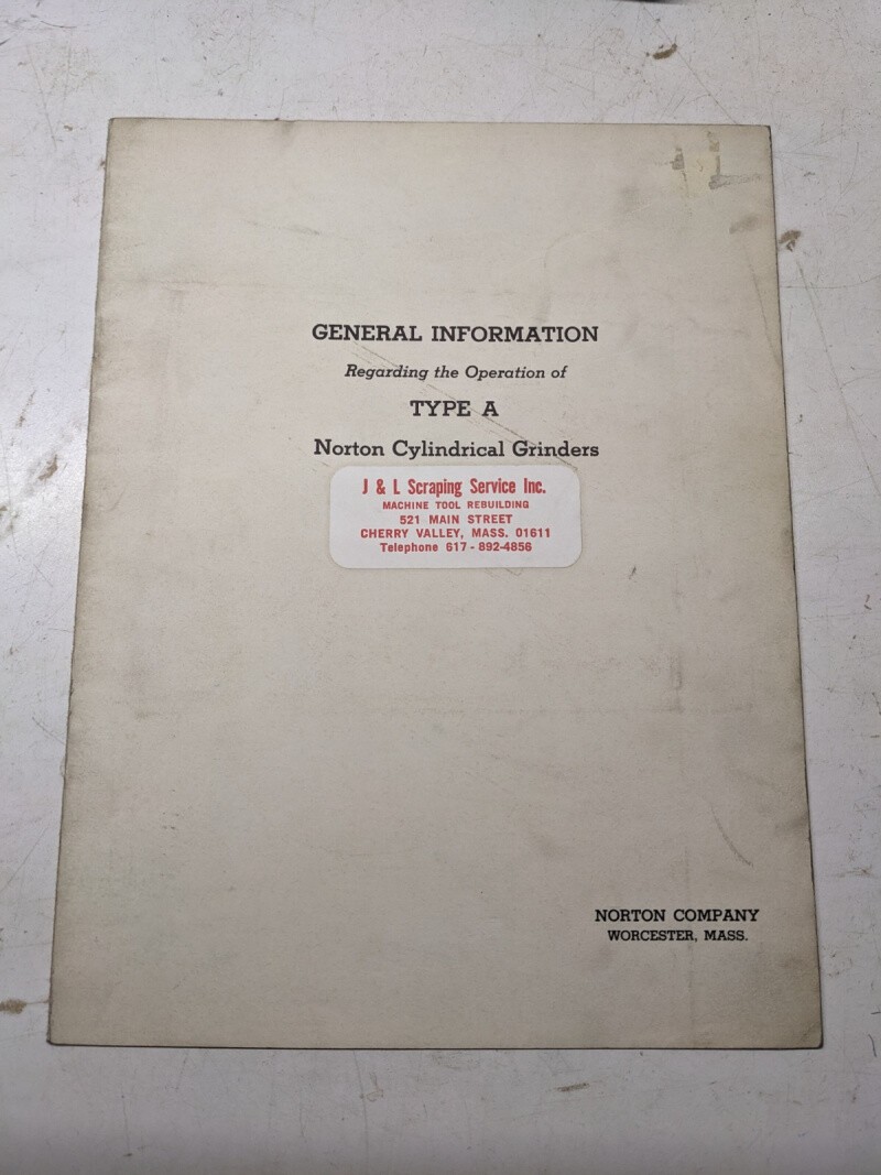 Norton Cylindrical Grinders Operation Information Manual Type A 987-5-40-1M