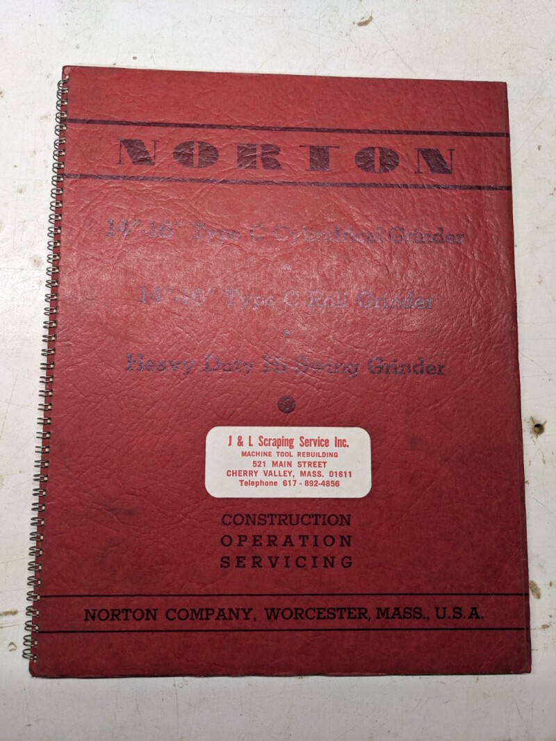 Norton Grinder Machine Install Operator Service Manual Part List 14”-16” Type C