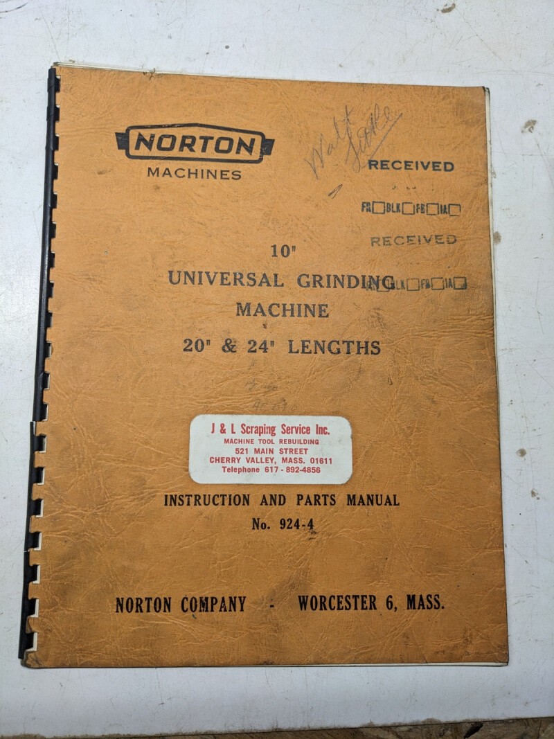 Norton Grinding Machine Operator Service Manual Part List 10” Universal 924-4