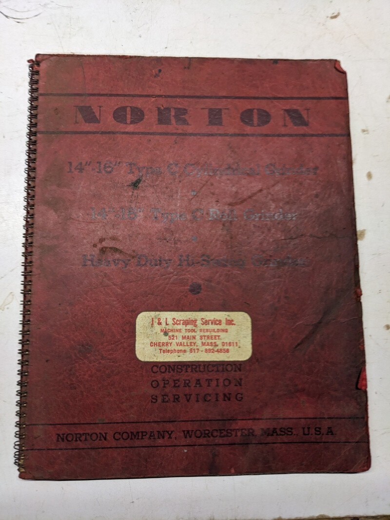 Norton Grinding Machines Operator Service Manual Parts List 14-16” Type C