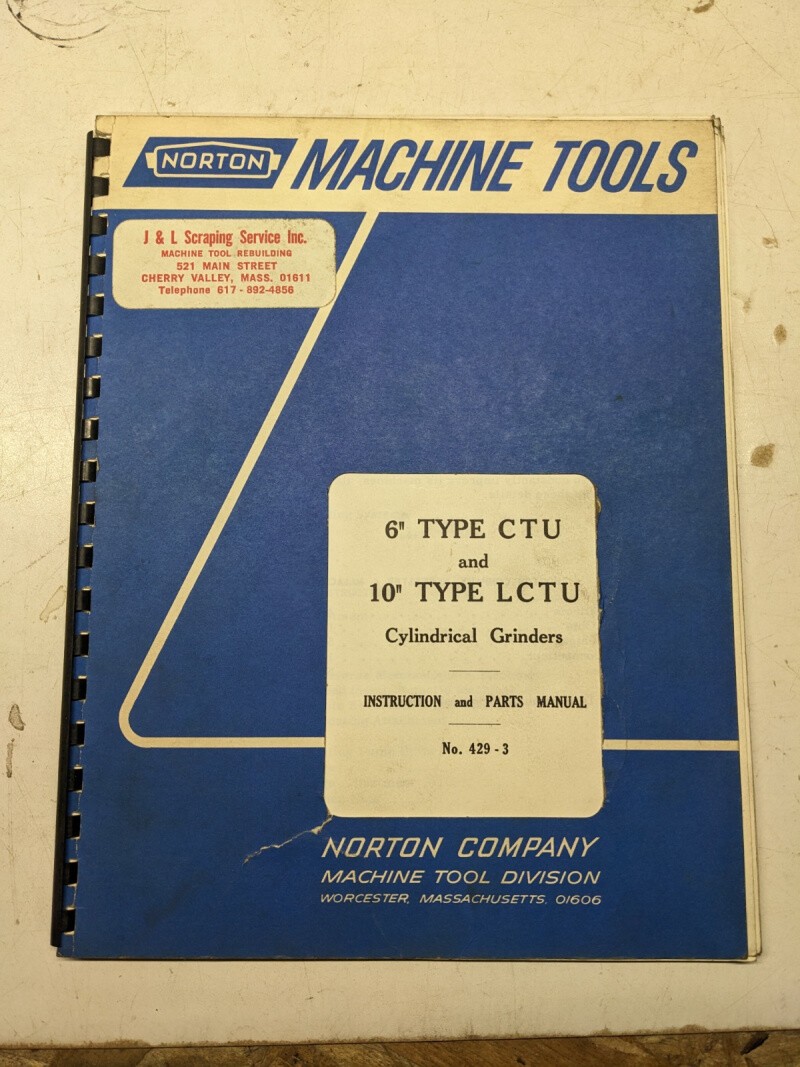 Norton Grinding Machines Operator Service Manual Parts List 6” Ctu 10” Lctu Type