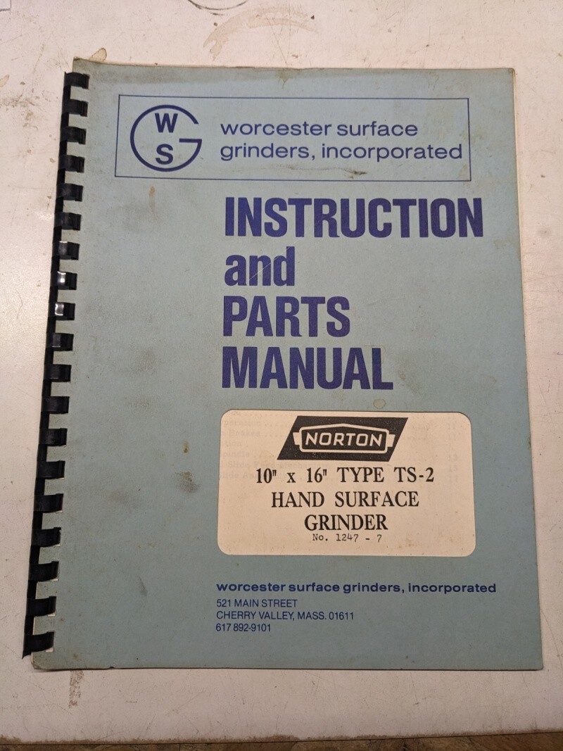 Norton Instruction Operator Part Manual Hand Surface Grinder 10X16” Type Ts-2