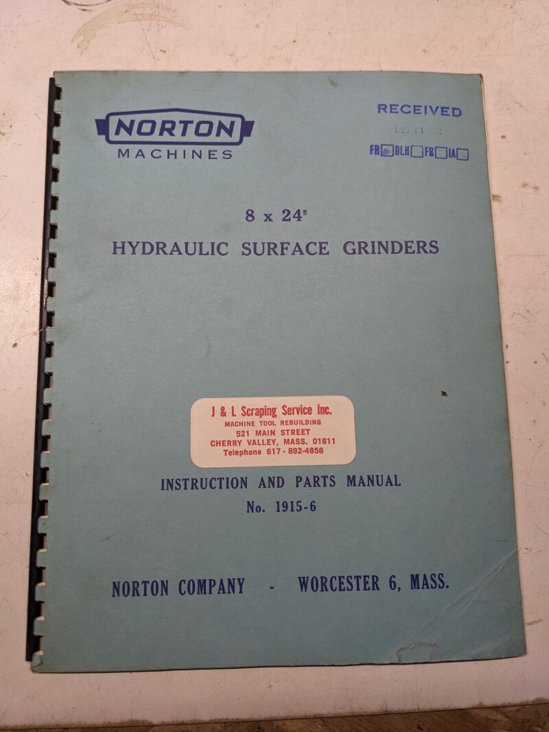 Norton Instruction Operator Parts List Book Manual Surface Grinding 8X24 1915-6