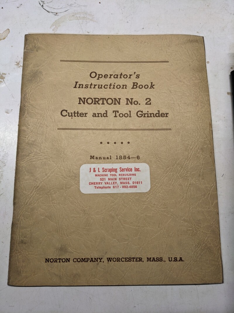 Norton Instruction Operator Parts List Manual Tool Cutter Grinder #2 1854-6