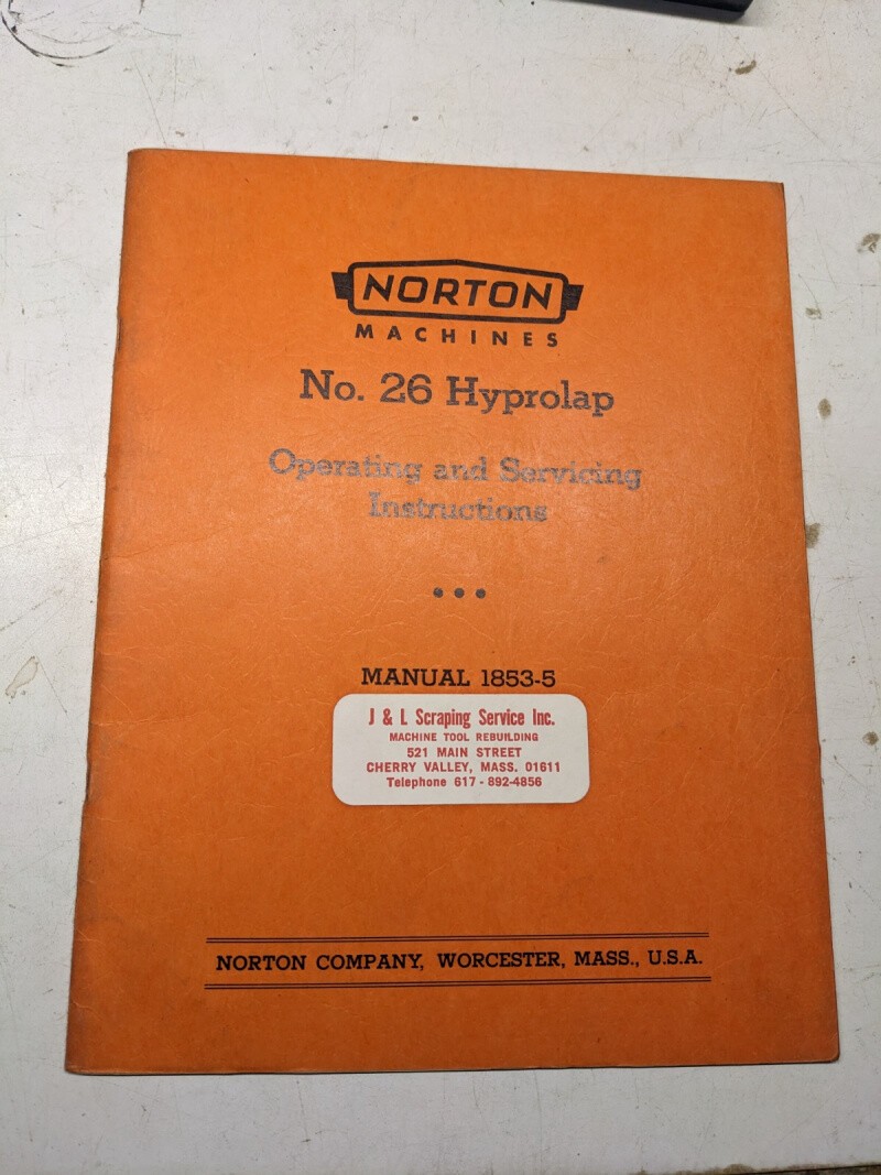 Norton Lapping Machine Operator Service Manual Part List #26 Hyprolap 1853-5