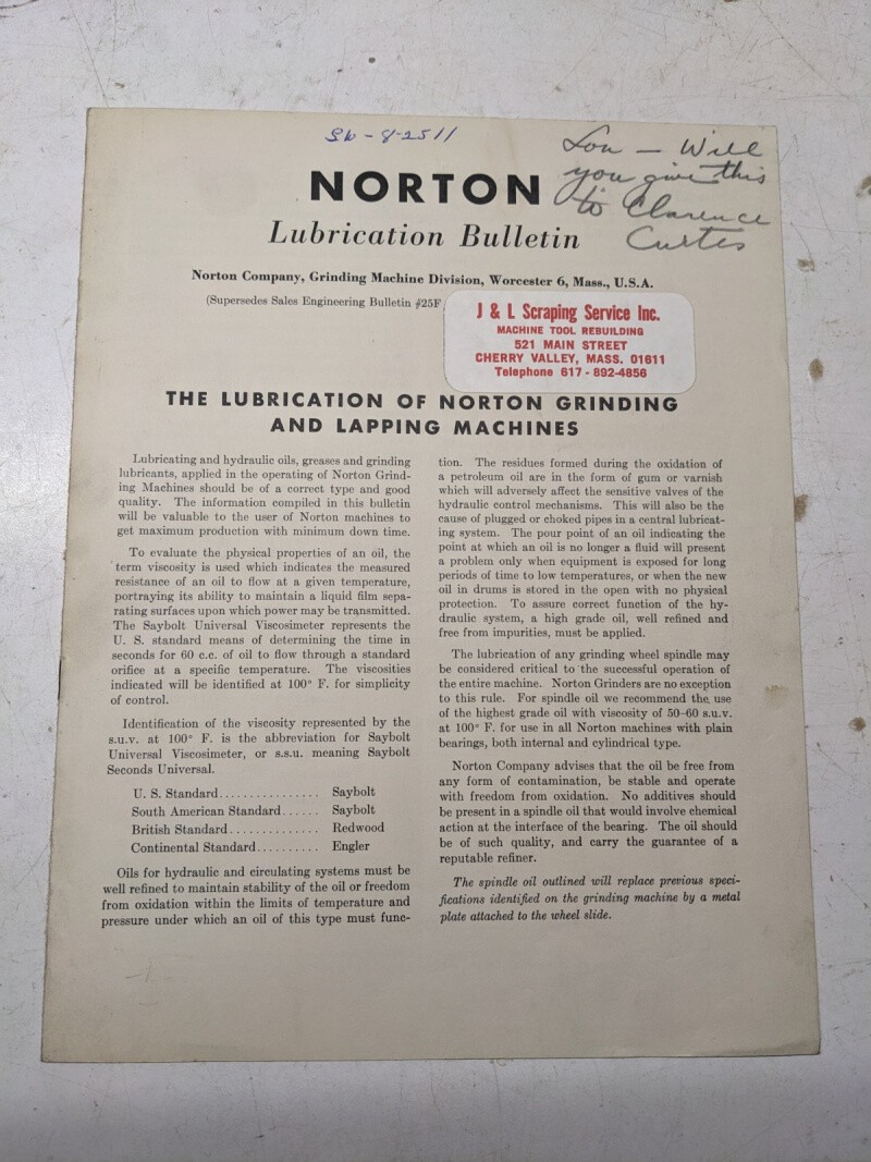 Norton Lubrication Bulletin Grinding Lapping Machine Specification Oil Type