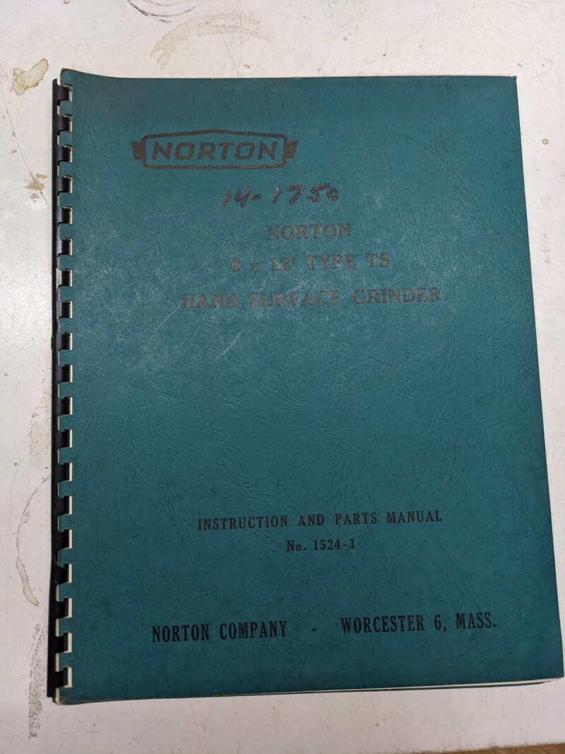 Norton Machine Instruction Part List Manual Hand Surface Grind 6X12” 1524-1 Ts