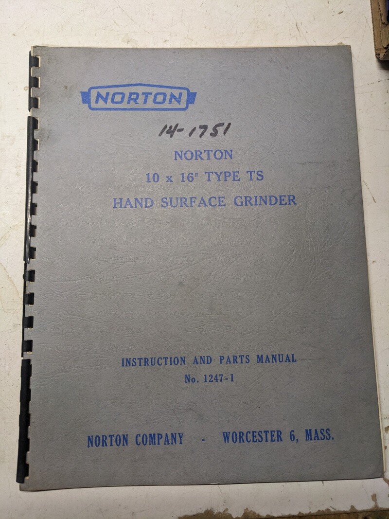 Norton Operator Service Manual Parts List 10X16” Ts Type Surface Grinder 1247-1