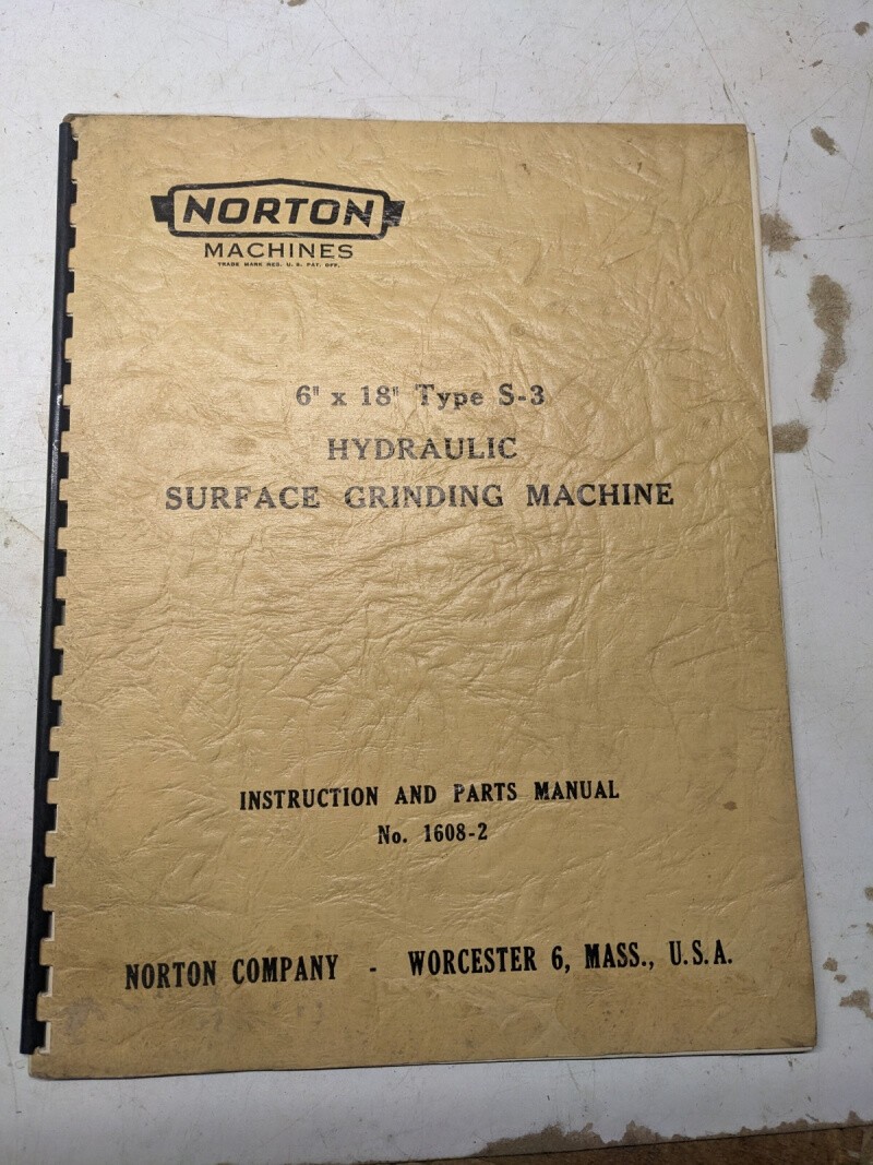 Norton Operator Service Manual Parts List 6X18” S-3 Type Surface Grinder 1608-2