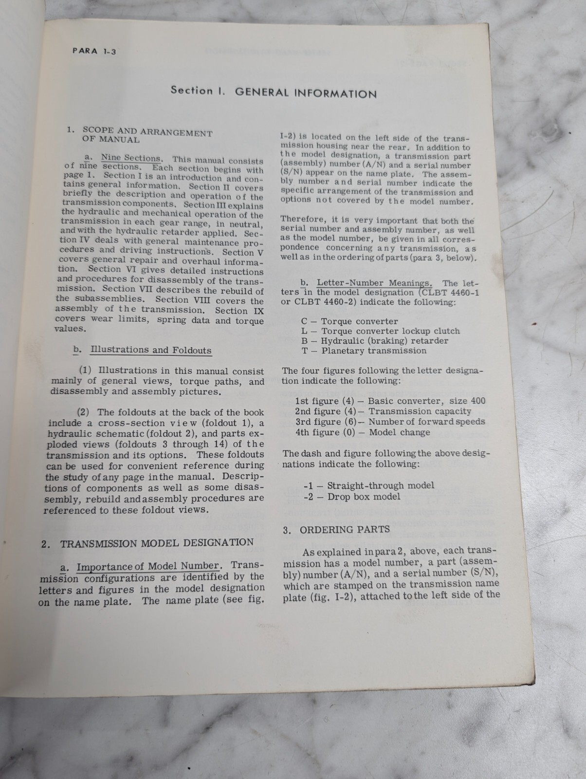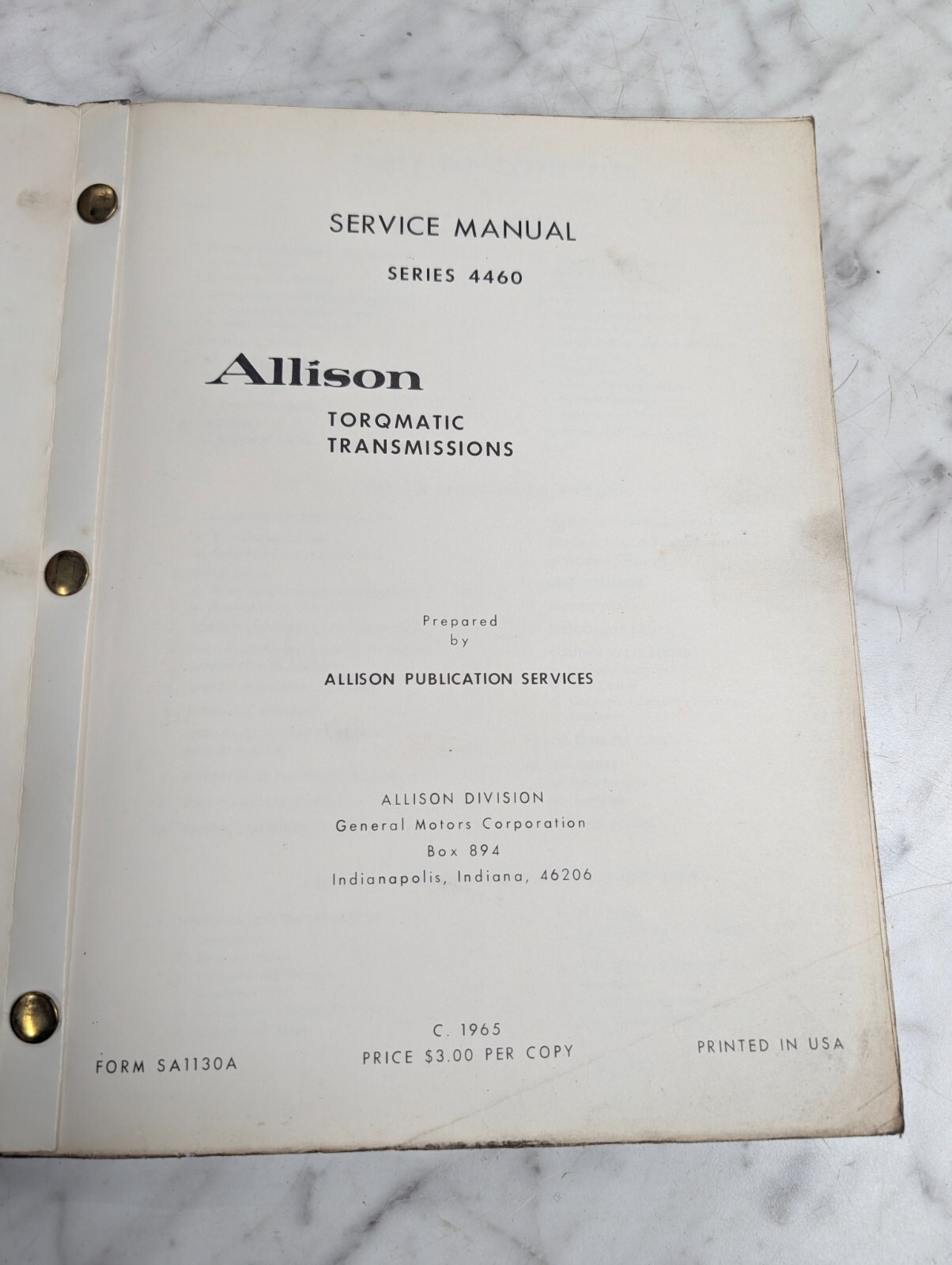 Oem Allison Series 4460 Transmission Service Repair Shop Manual Sa1130A 1965