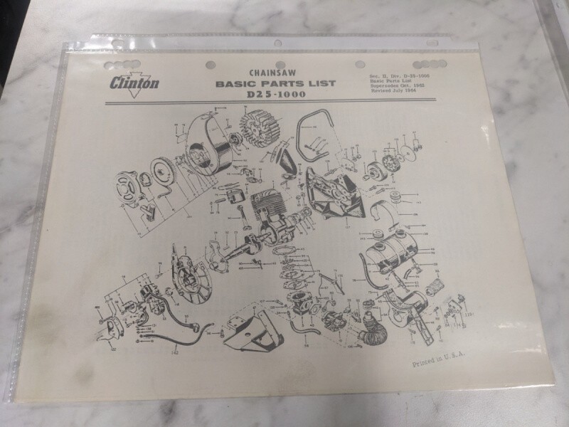 Oem Clinton Engines Chain Saw Basic Service Parts List Manual 1962 D25-1000