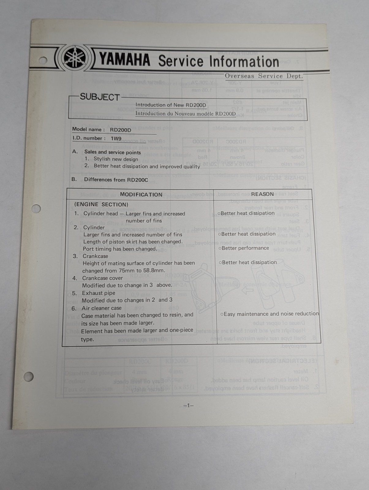 Oem Yamaha Rd200D Service Information Sheets Motorcycle Model Updates