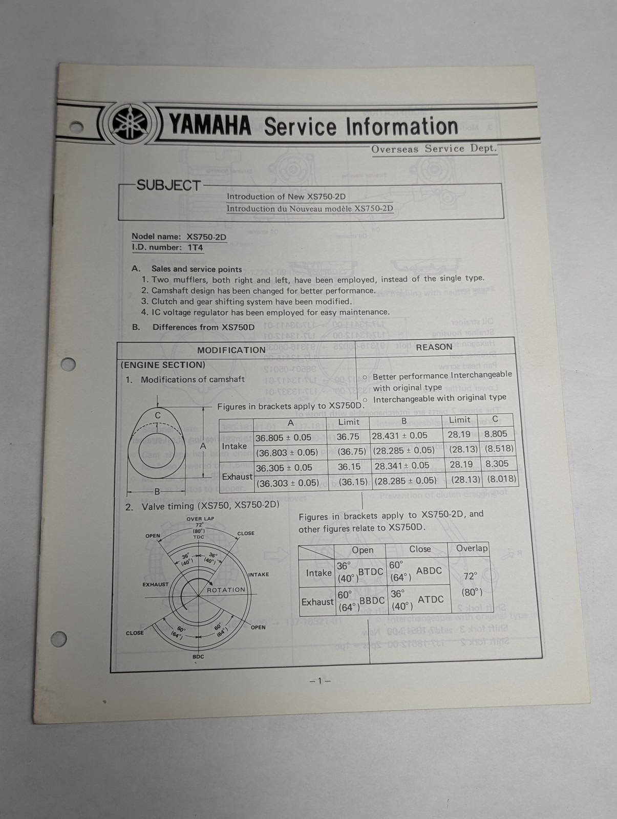 Oem Yamaha Xs750-2D Service Information Sheets Motorcycle Model Updates