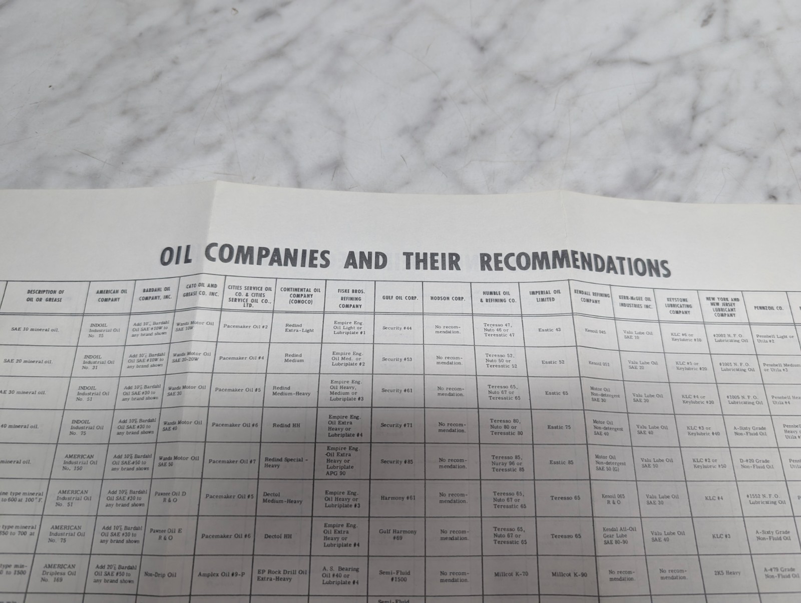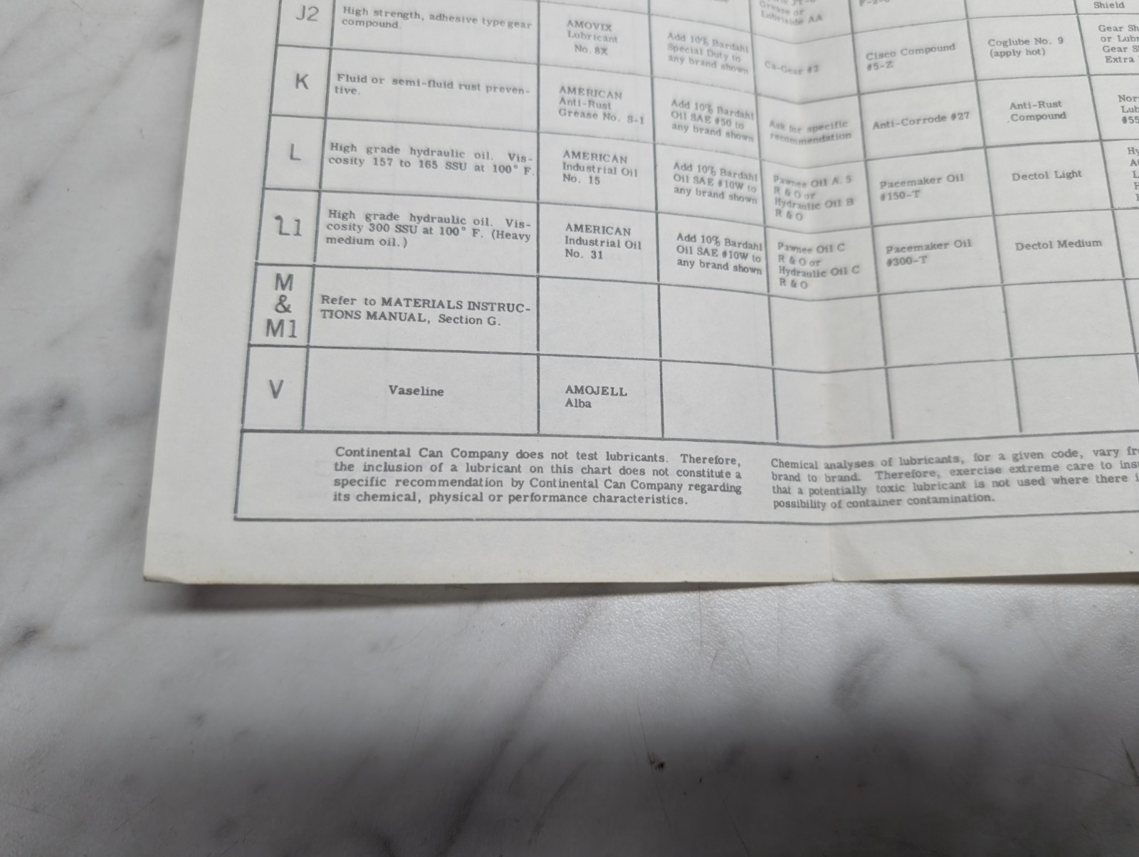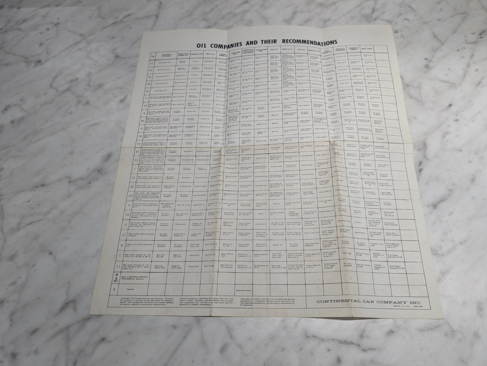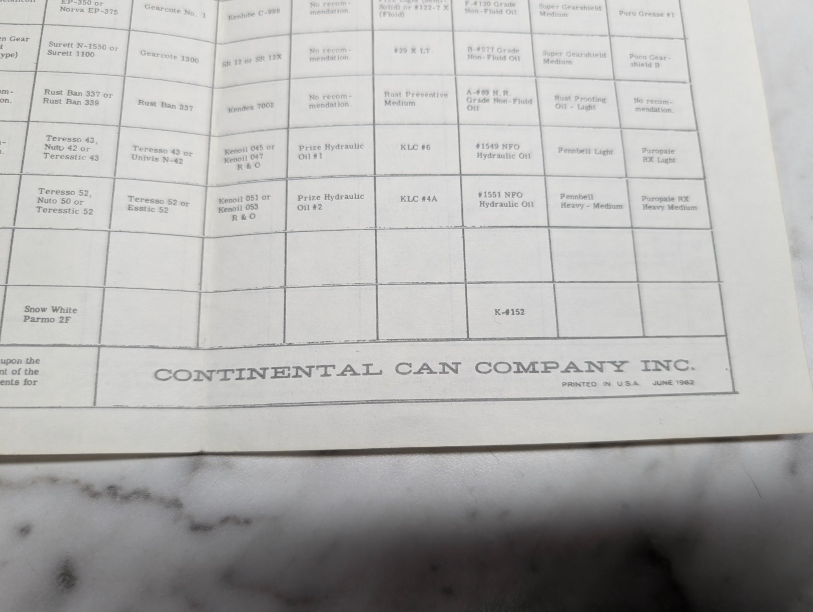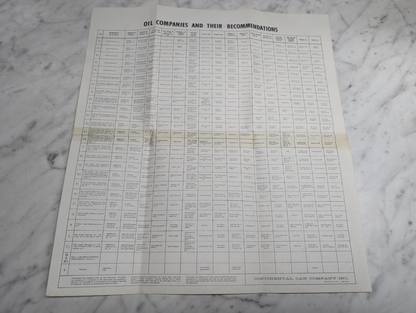 Oil Companies And Their Recommendations Continental Can Company Lubricants 1962