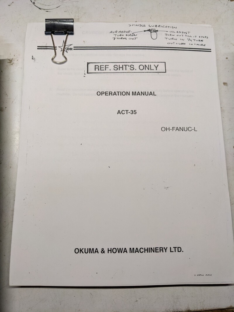 Okuma Howa Machinery Operation Manual Act-35 Oh-Fanuc-L Cnc Programming Oh