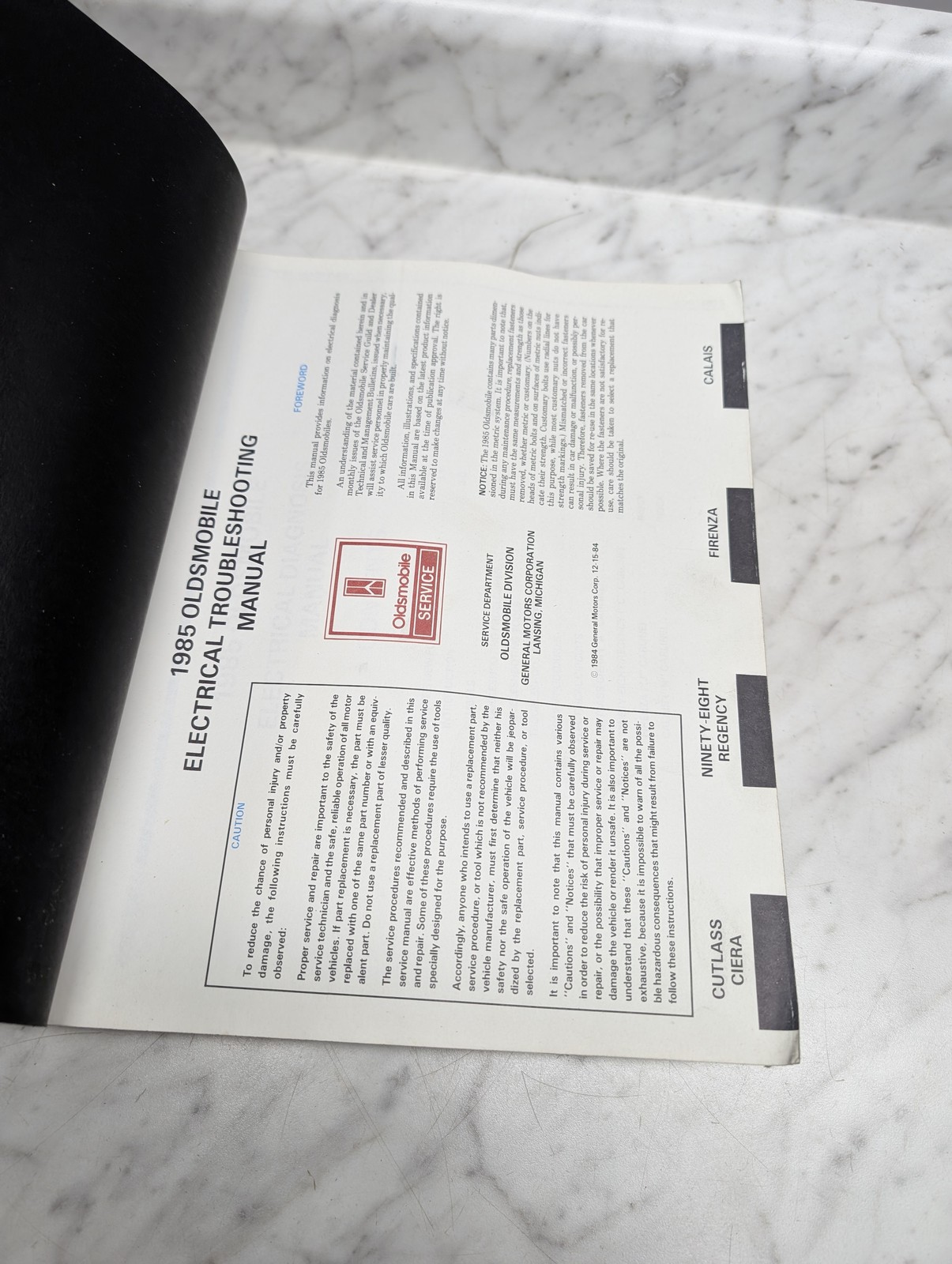 Oldsmobile 1985 Firenza Electrical Troubleshooting Manual Cutlass Firezna Calais