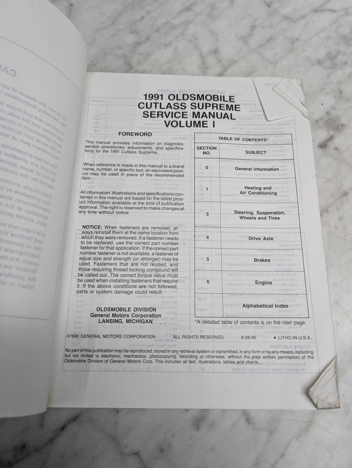 Oldsmobile 1991 Cutlass Supreme Service Manual Vol 1 Repair Maintenance Shop