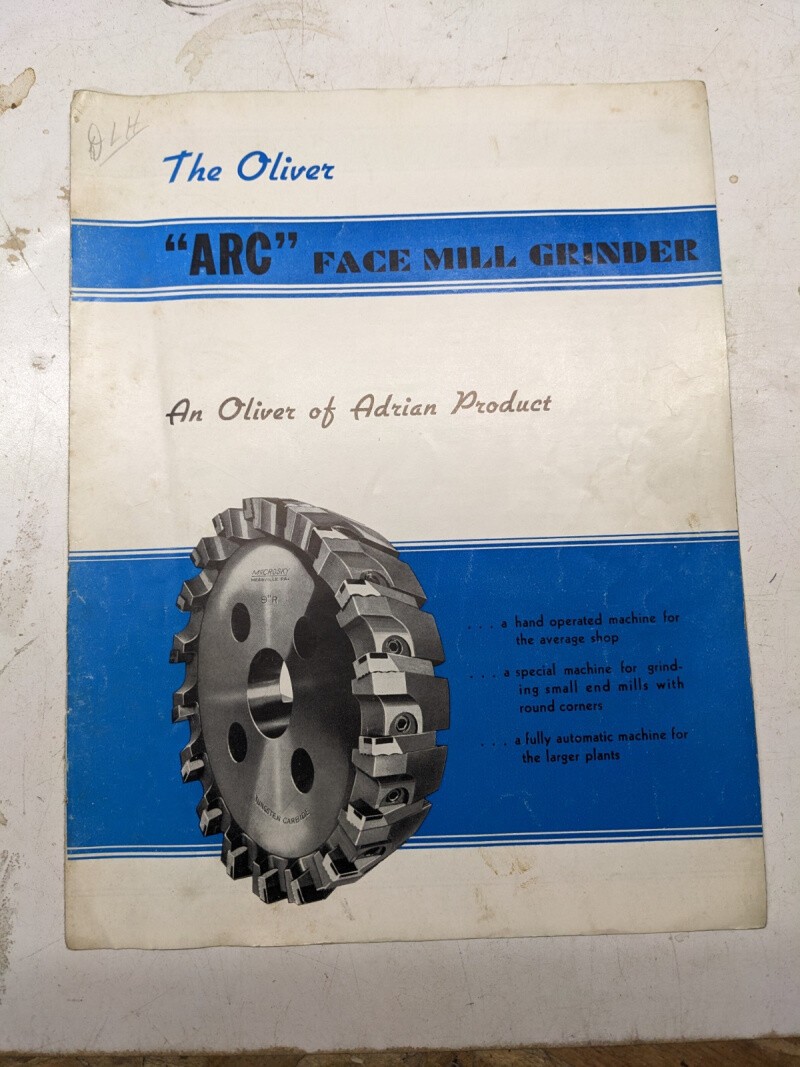 Oliver Arc Face Mill Grinder Adrian Sales Brochure Catalog Specifications