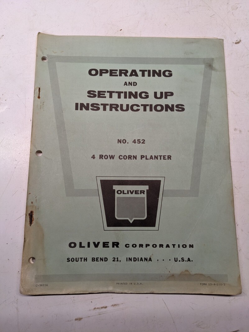 Oliver Operating Setting Up Instruction Manual #451 4 Row Corn Planter C-3611A