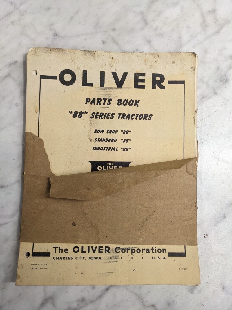 Oliver Tractor Service Parts List Book Manual 88 Series Row Crop Industrial 1949