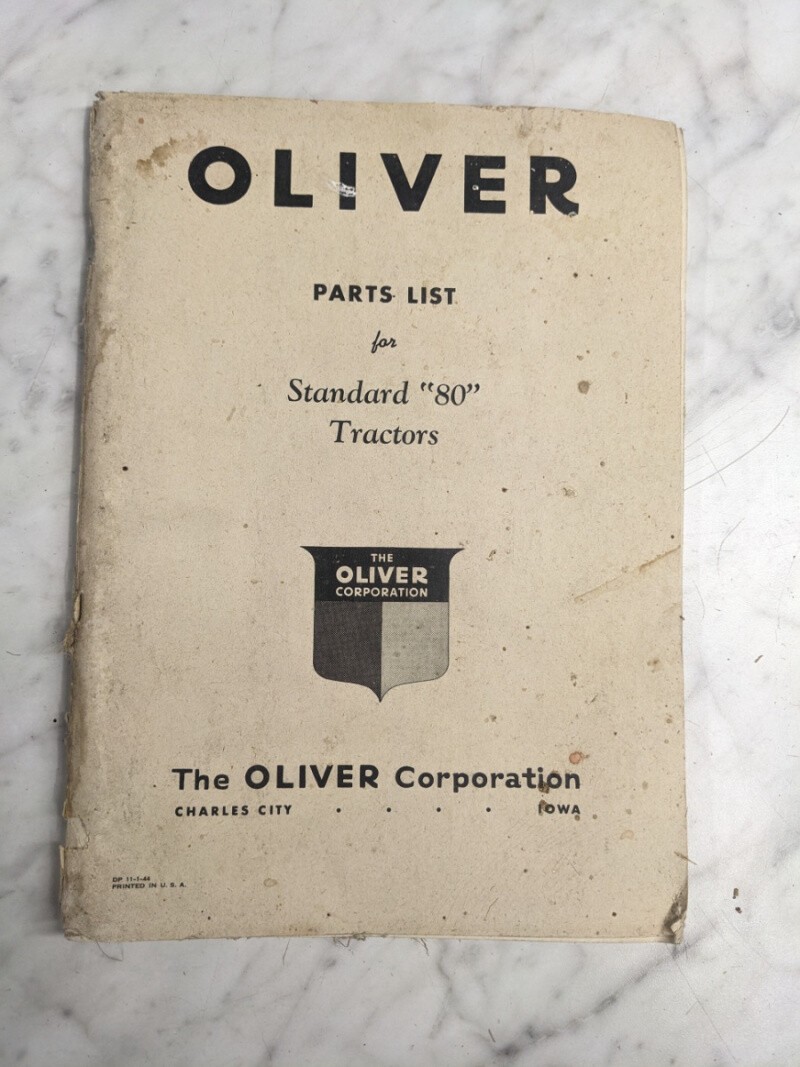 Oliver Tractor Service Parts List Book Manual Catalog Standard 80 1944