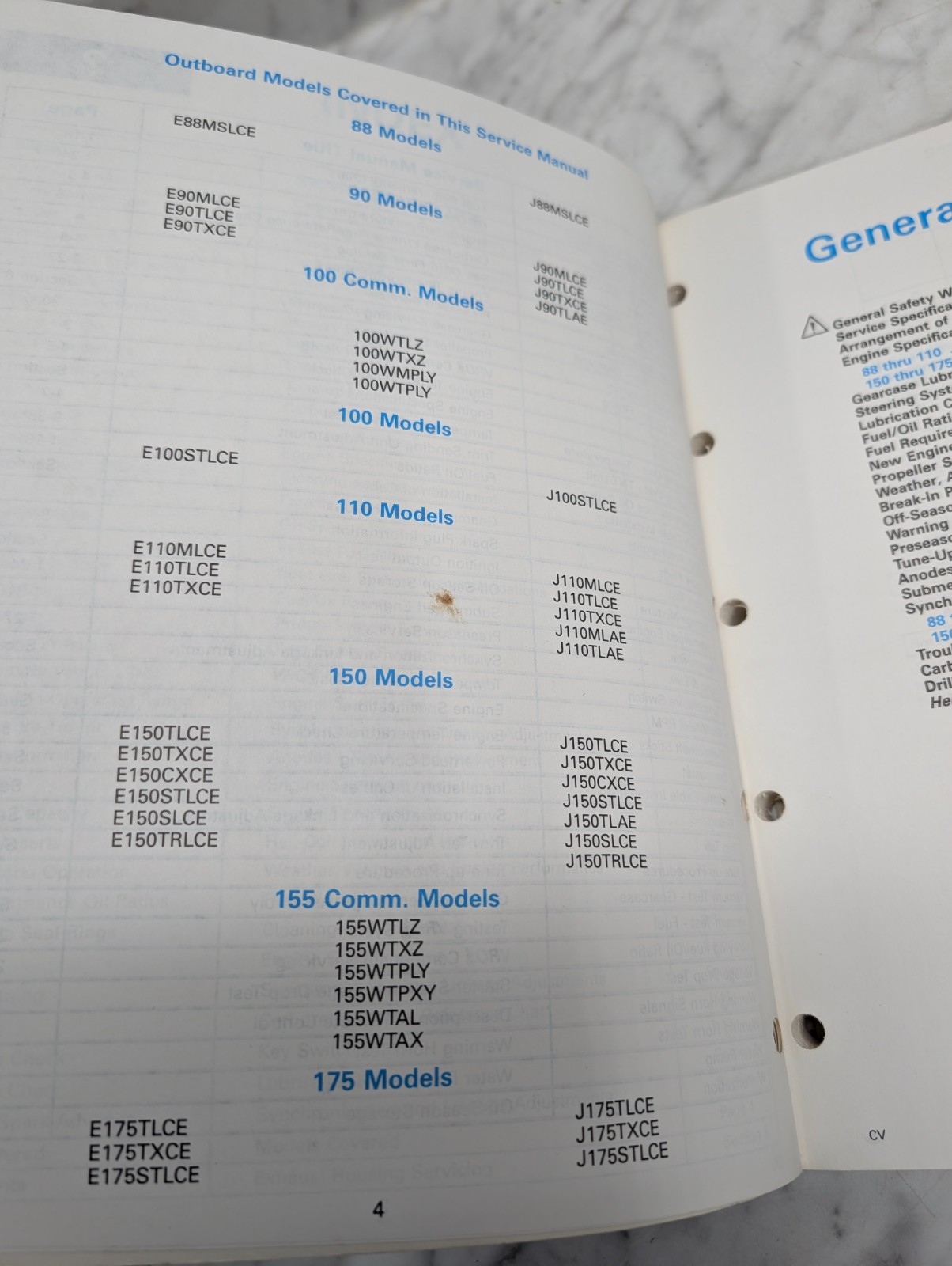 Omc Johnson Evinrude Service Manual “Ce” Cross V Cv Models 88 Thru 175 Hp 507757