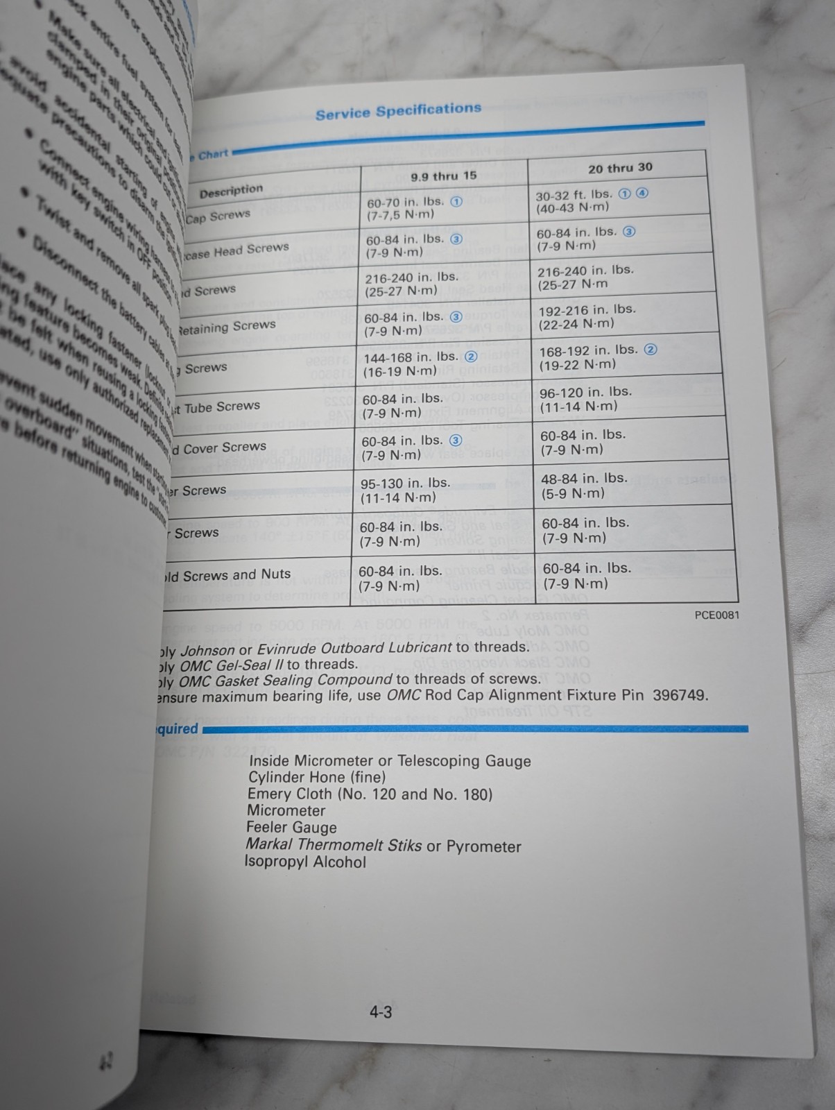 Omc Johnson Evinrude Service Manual “Ei” Models 9.9 Thru 30 Hp #507946