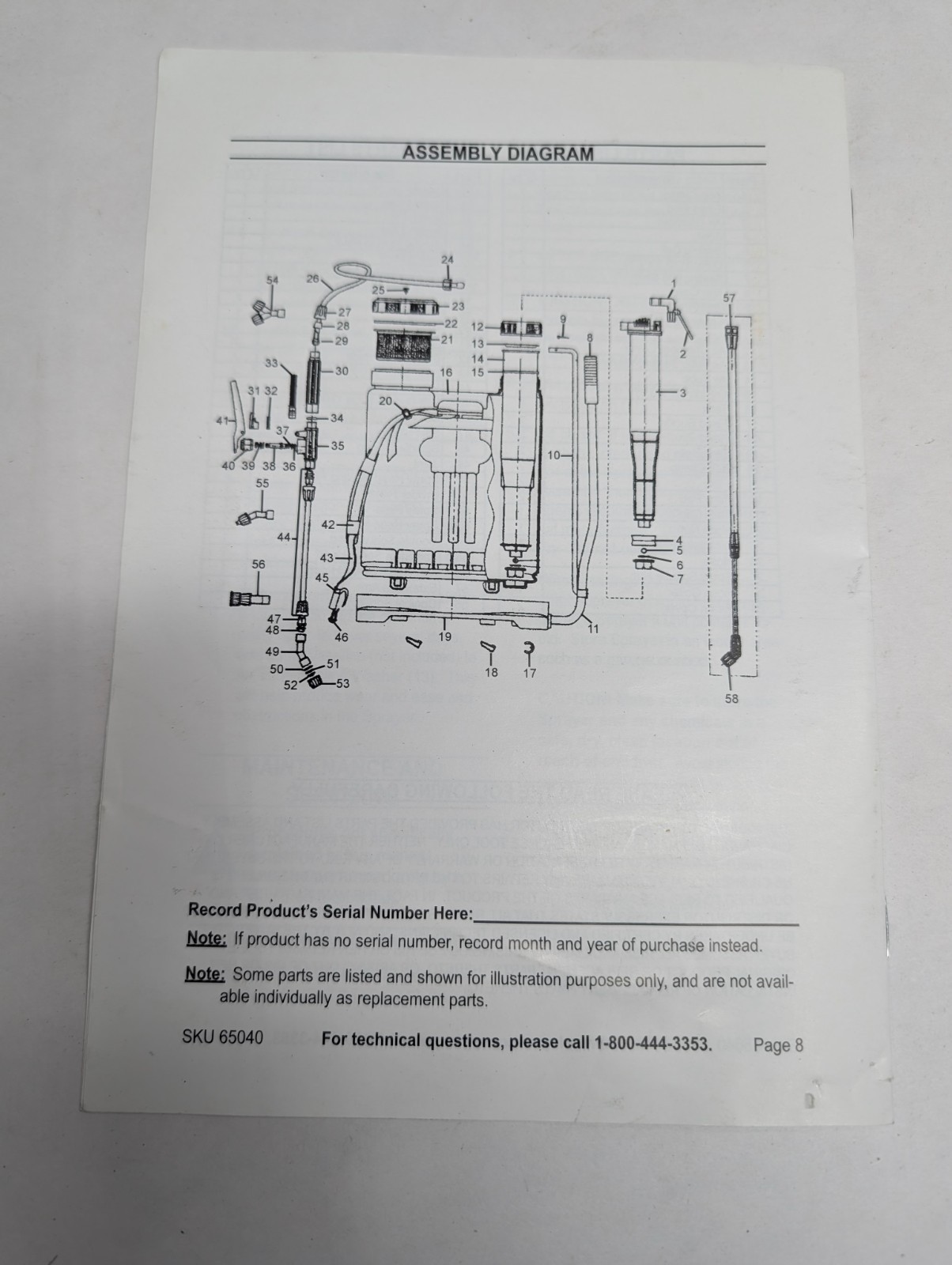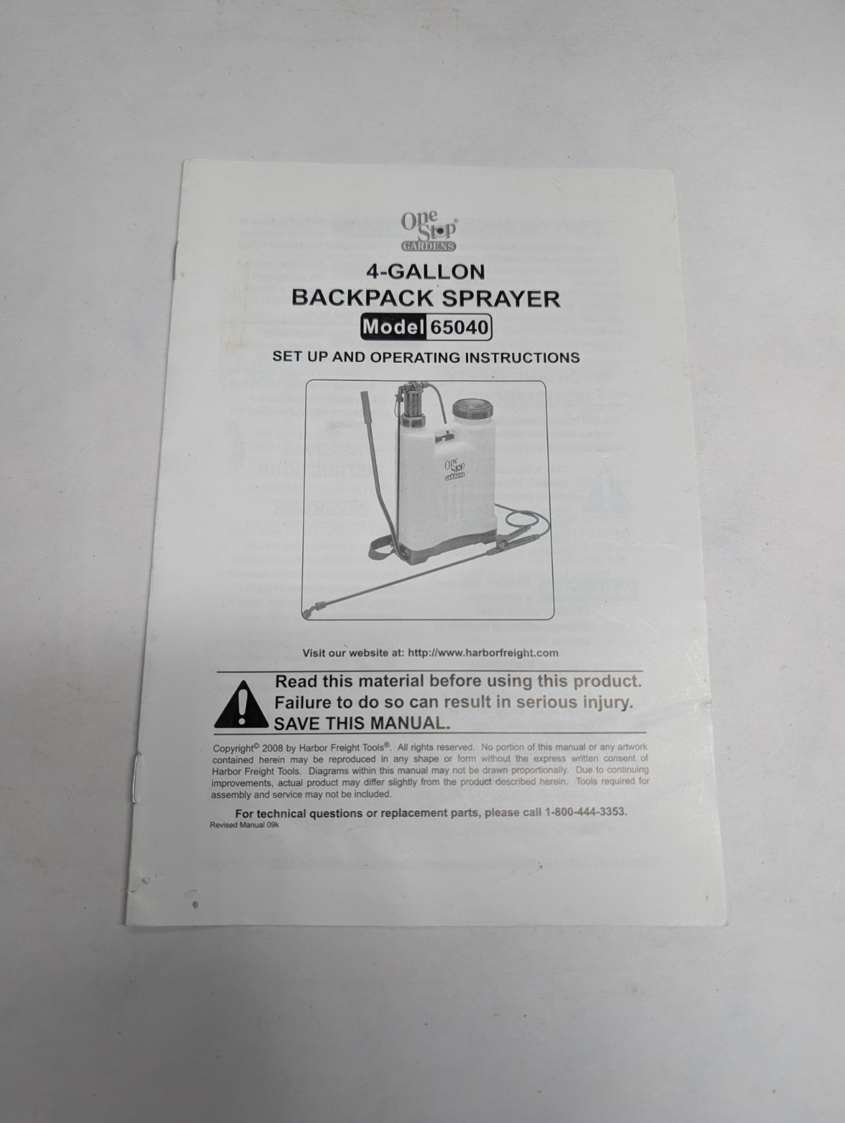 One Stop 4-Gallon Backpack Sprayer Model 65040 Setup Operator Instruction Manual