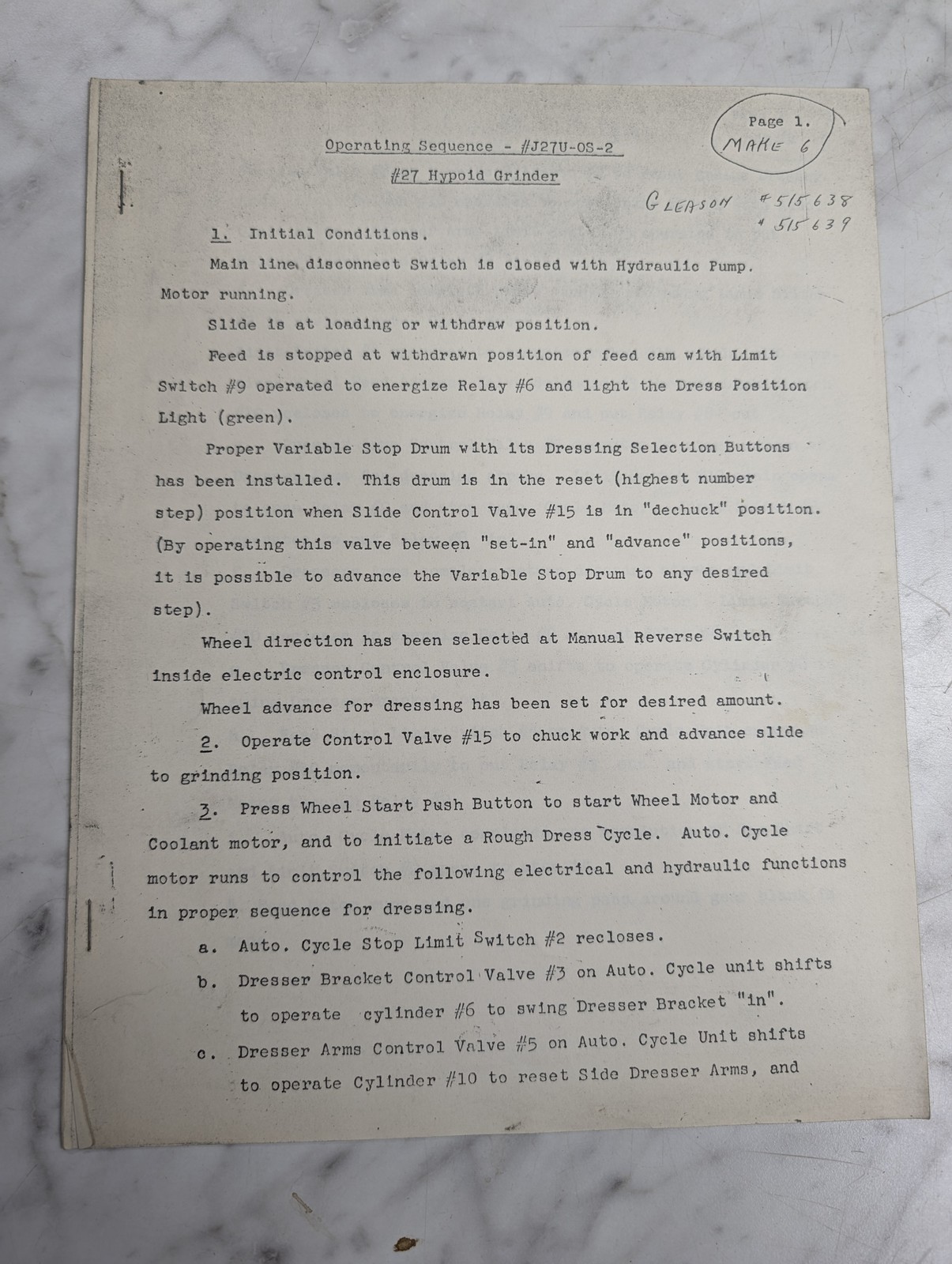 Operating Instruction Sequence #J27U-Os-2 #27 Hypoid Grinder Gleason #5156638