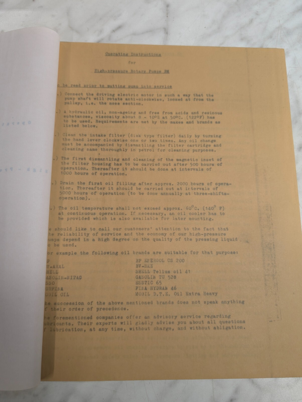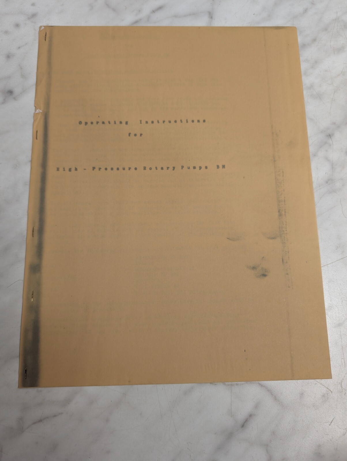 Operating Instructions For High Pressure Rotary Pumps Bm