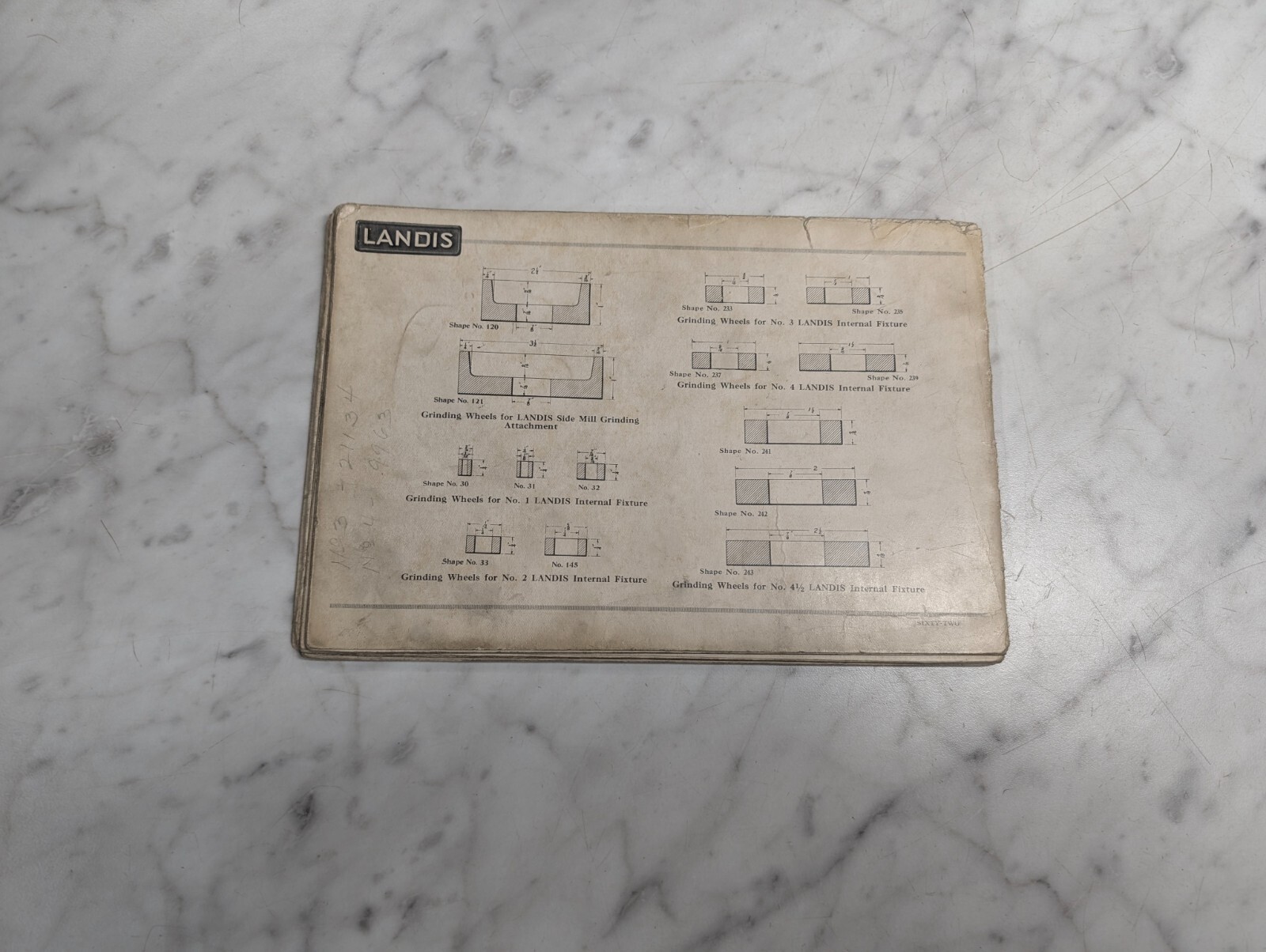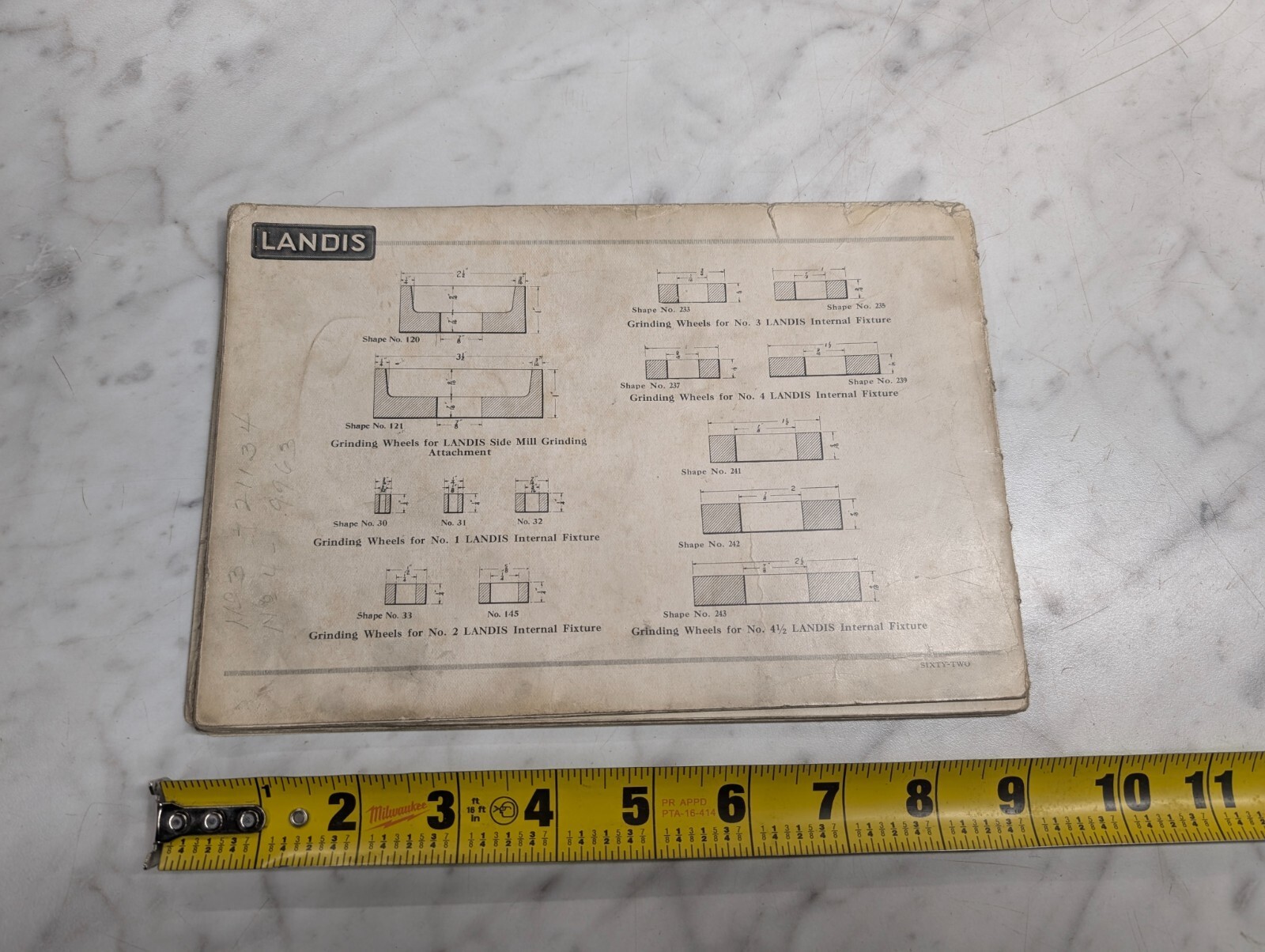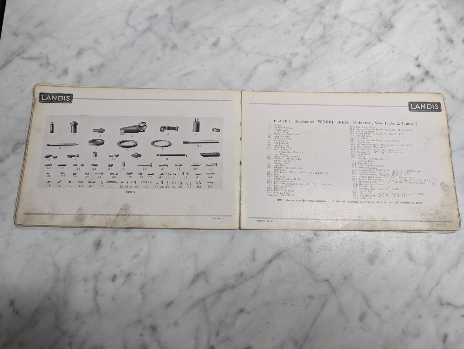 Operator Manual Service Parts List Landis #1 #1-1/2 Universal Grinding Machines